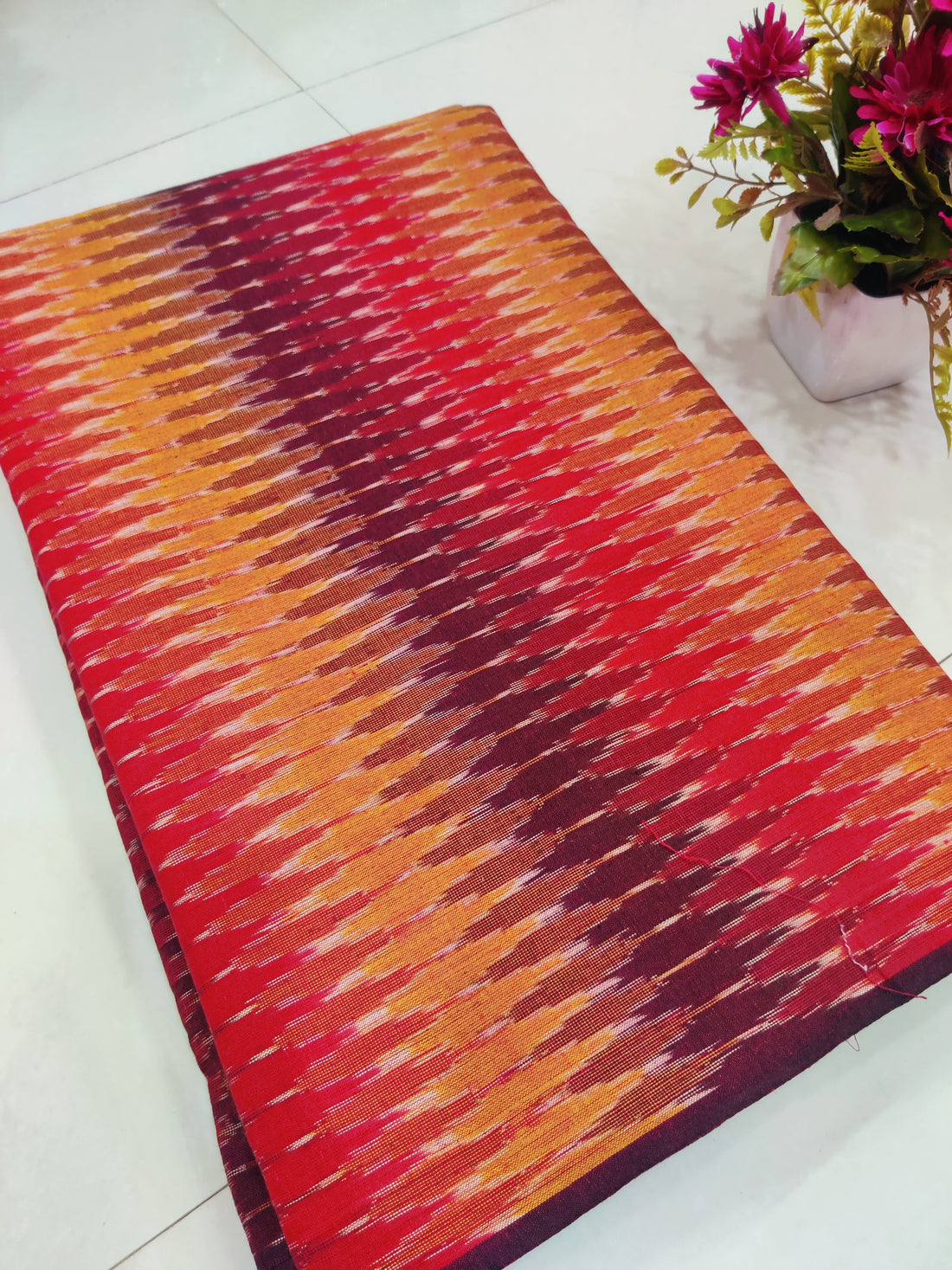 Orange - MERCERISED COTTON HANDLOOM POCHAMPALLY IKAT SAREE 01
