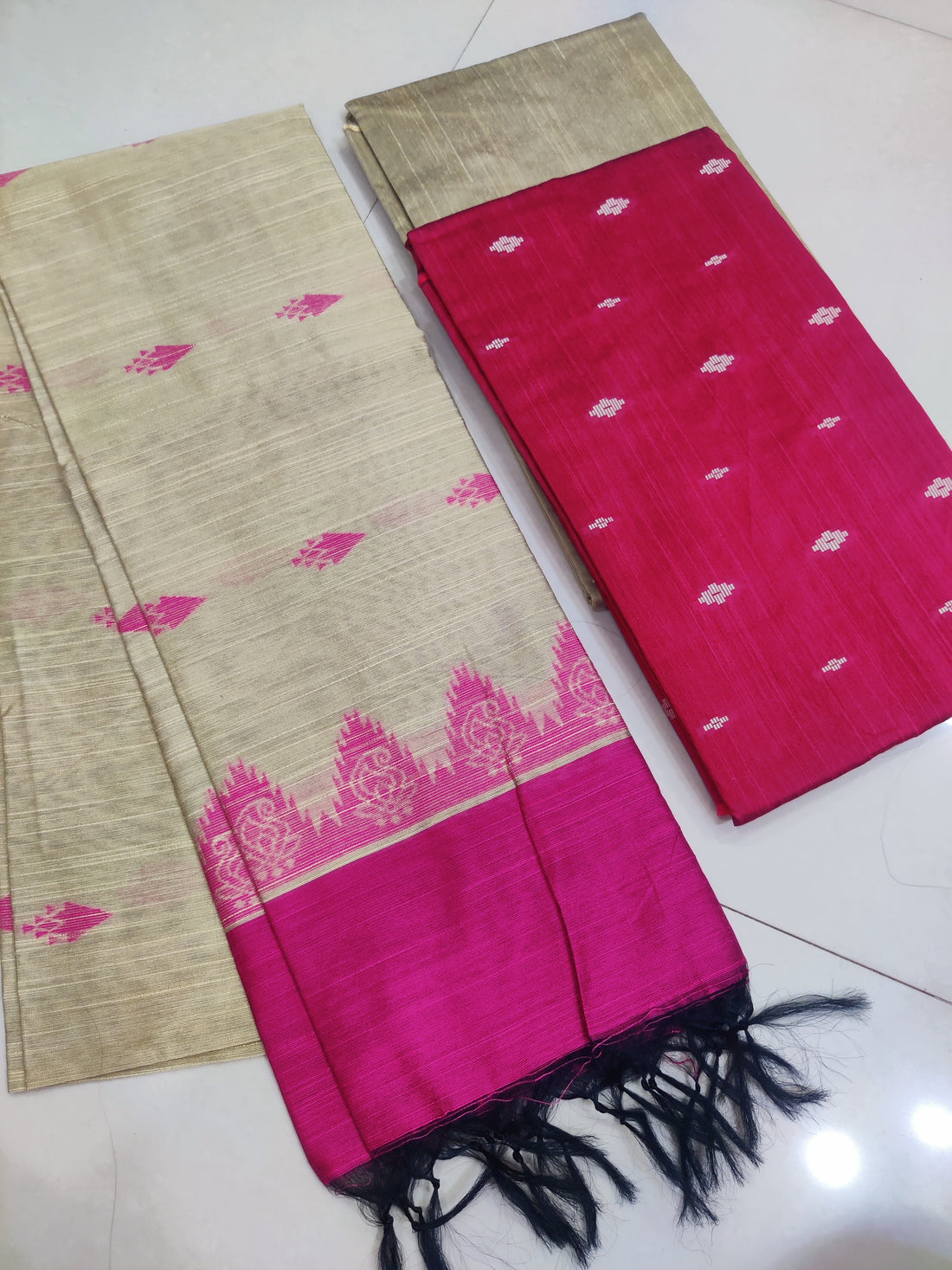 Experience the rich elegance of traditional weaving with this exquisite Raw Silk Suit Set, crafted...