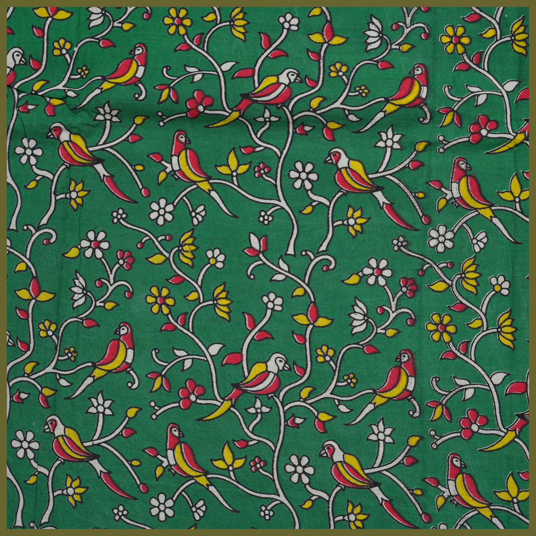 GREEN- BLOCK PRINT COTTON PEDANA KALAMKARI FABRIC 17