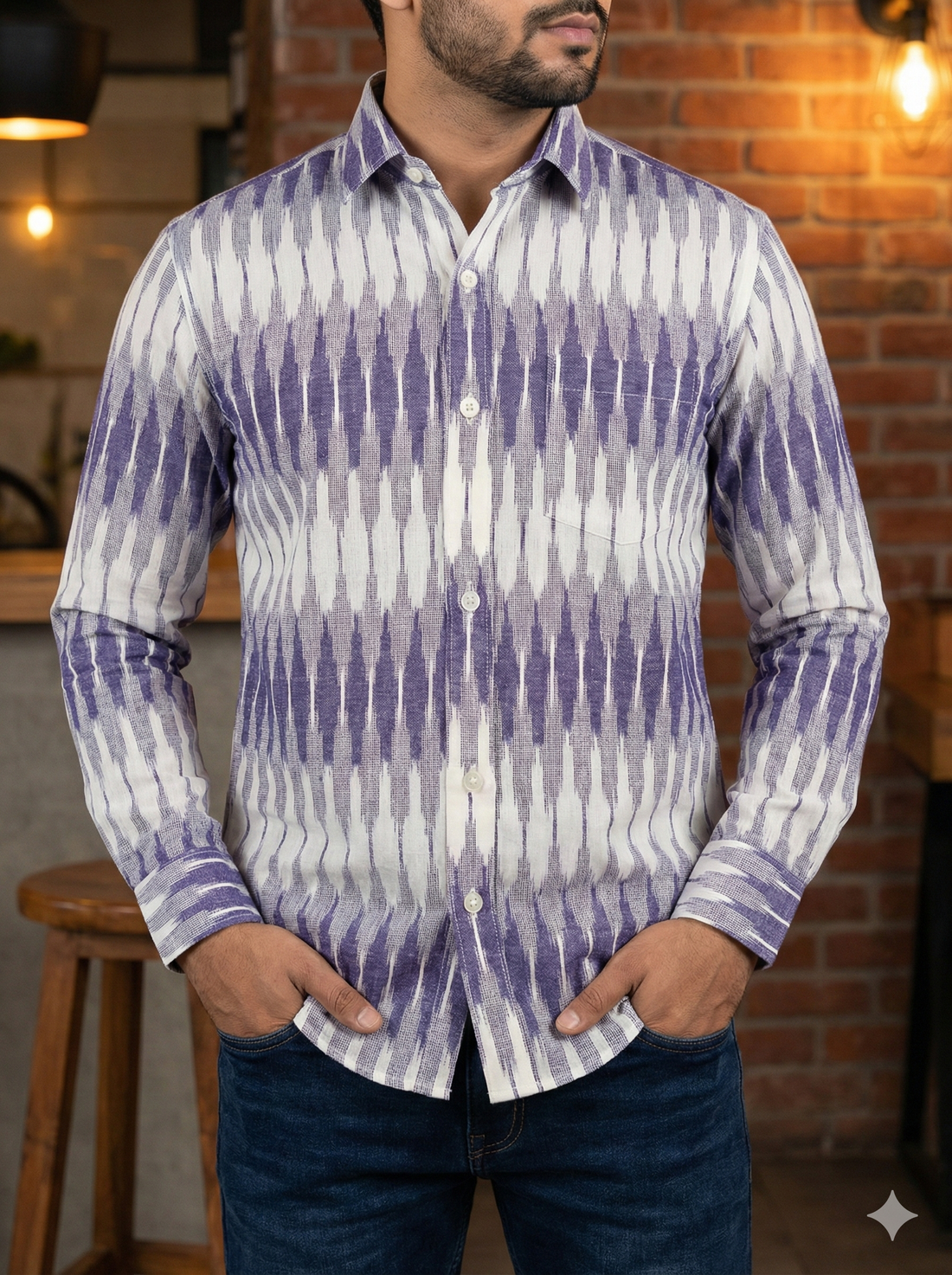 WHITE- FULL SLEEVE COTTON MEN POCHAMPALLY IKAT SHIRT 18