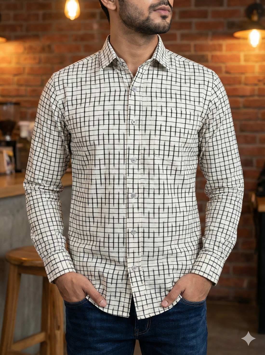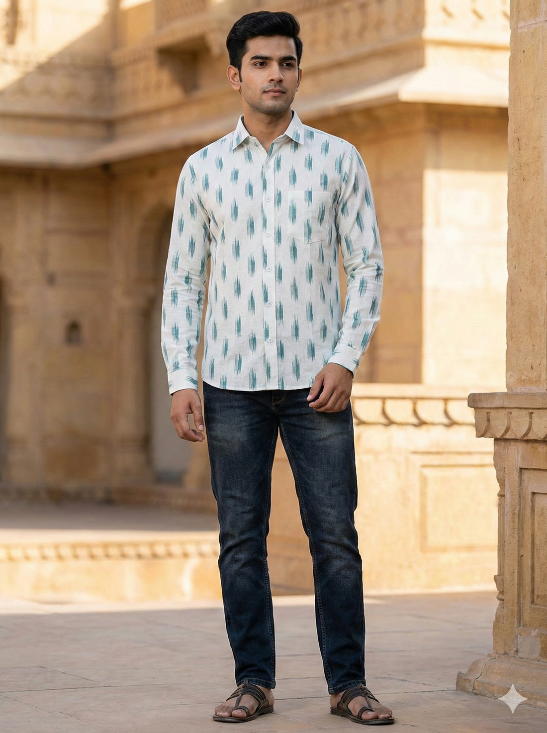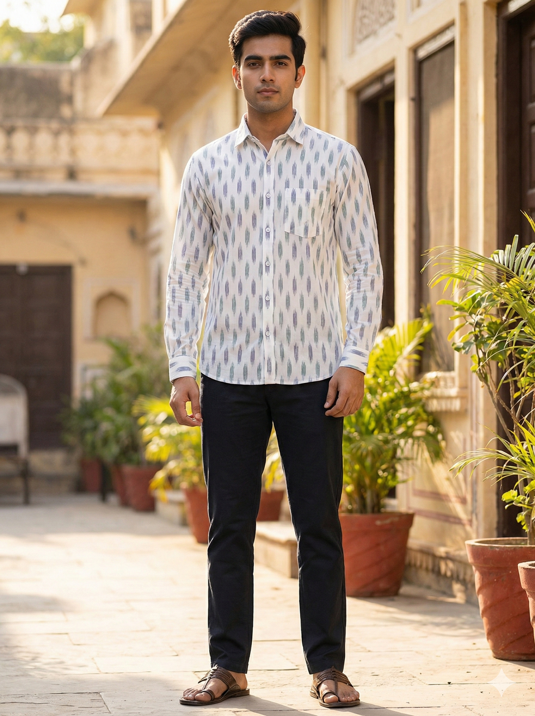 WHITE- FULL SLEEVE COTTON MEN POCHAMPALLY IKAT SHIRT 21
