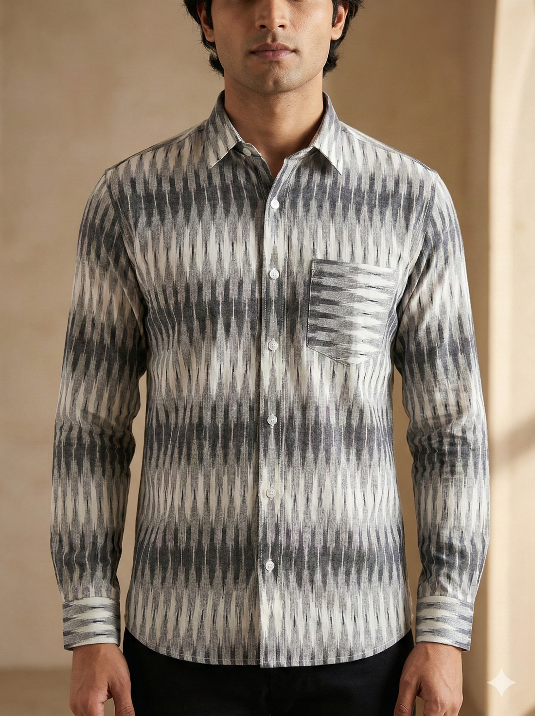 GRAY- FULL SLEEVE COTTON MEN POCHAMPALLY IKAT SHIRT 23