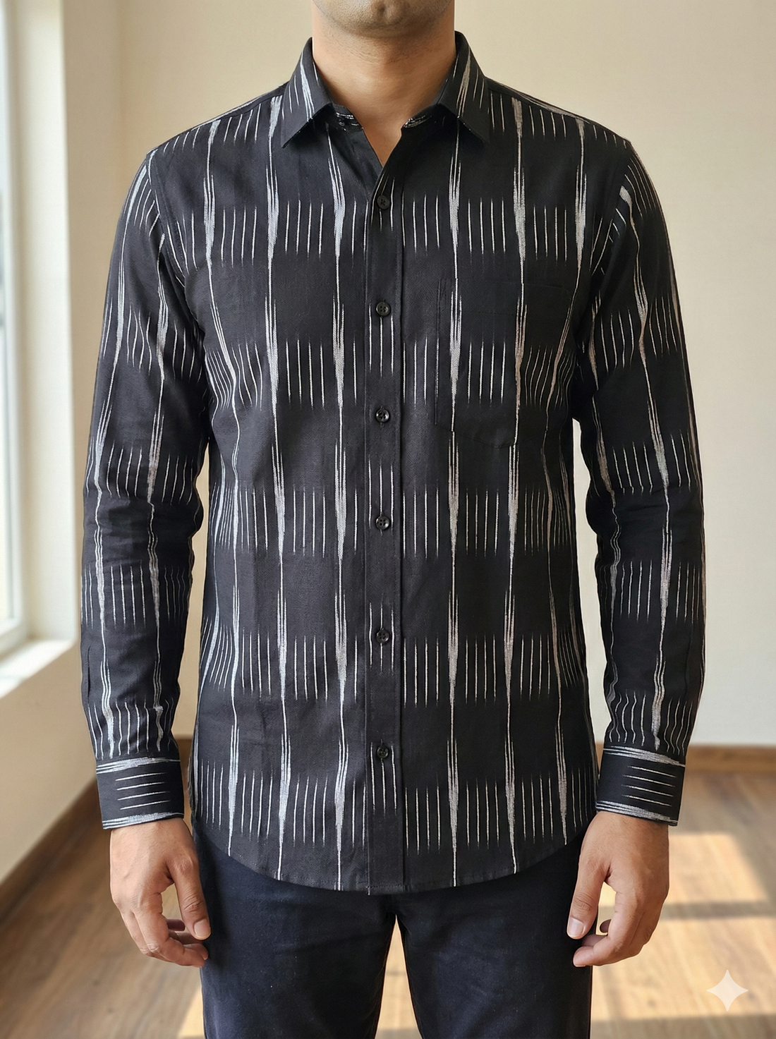 BLACK- FULL SLEEVE COTTON MEN POCHAMPALLY IKAT SHIRT 22