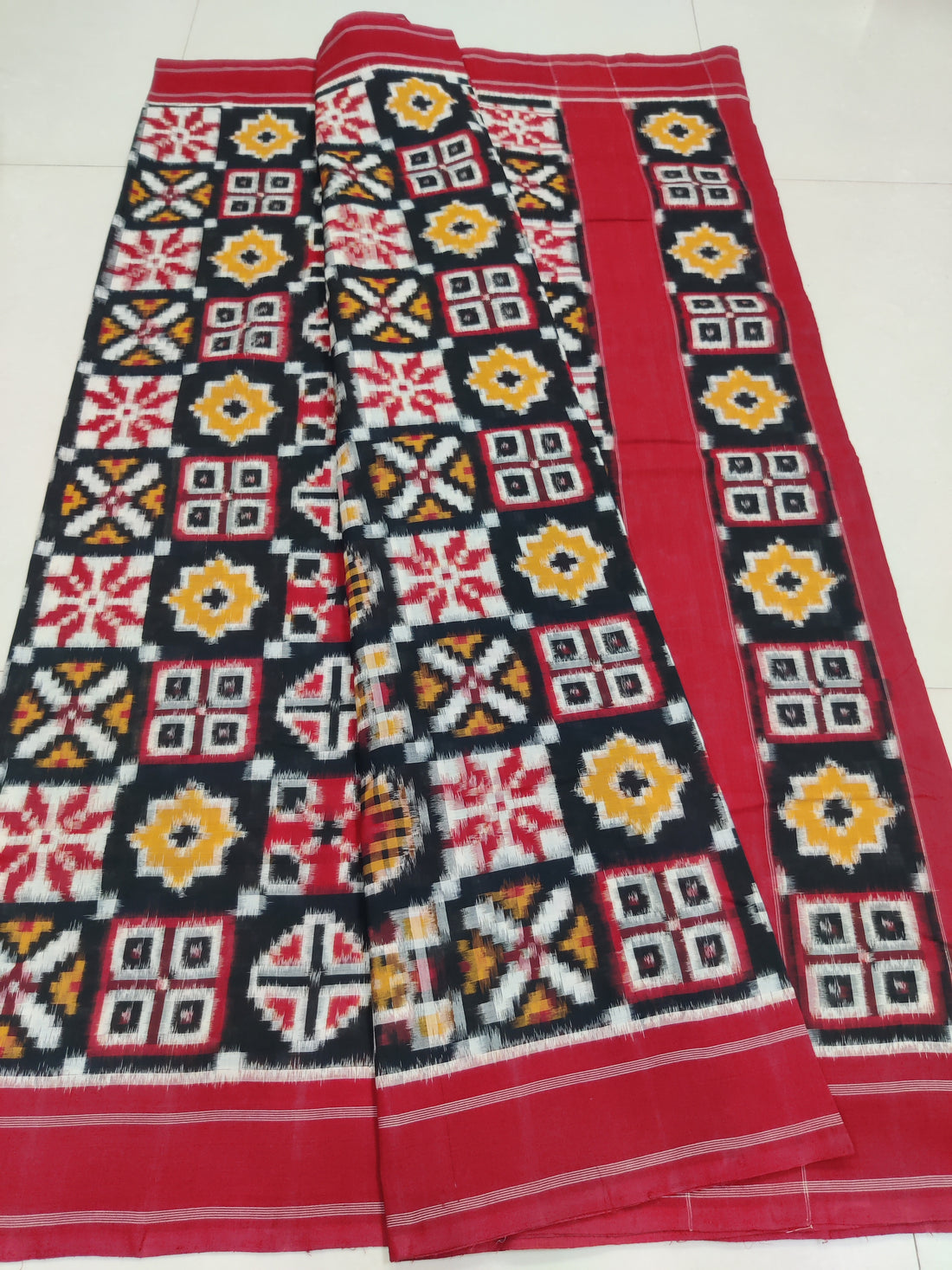 Experience the rich legacy of Telangana with this Handwoven Telia Rumal Double Ikat Cotton Saree...