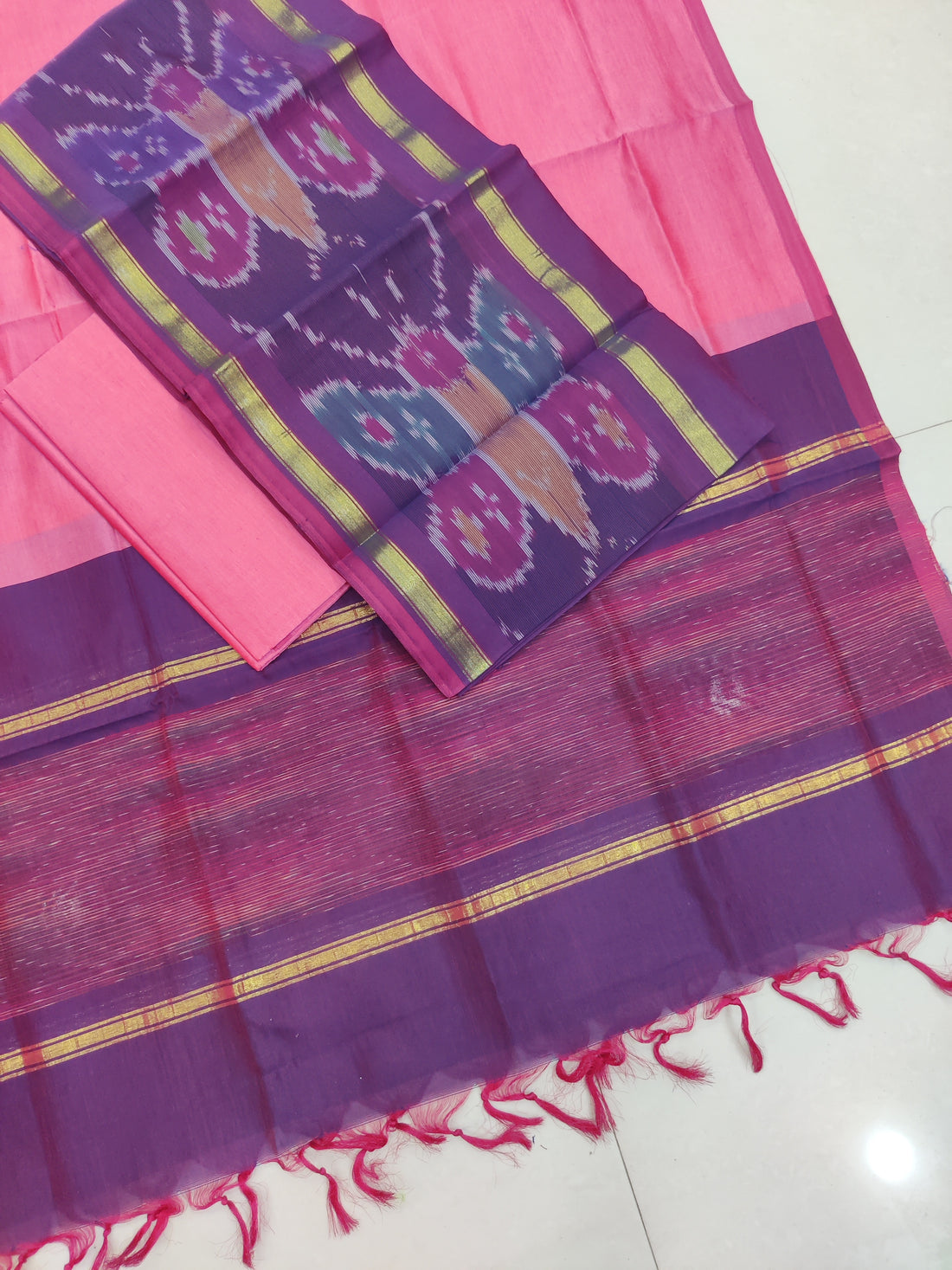 Pink - 3PC HANDLOOM SILK COTTON POCHAMPALLY IKAT DRESS MATERIAL SET 05