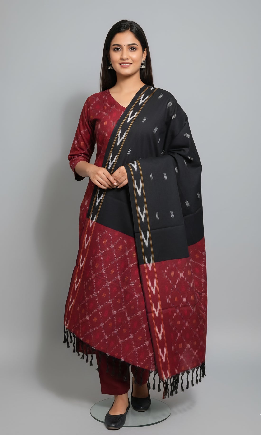 Red - HANDLOOM COTTON 3PC POCHAMPALLY IKAT DRESS MATERIAL 27