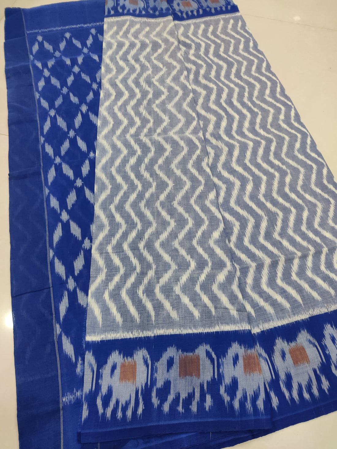 BLUE- MERCERISED PURE COTTON HANDLOOM POCHAMPALLY IKAT SAREE 114