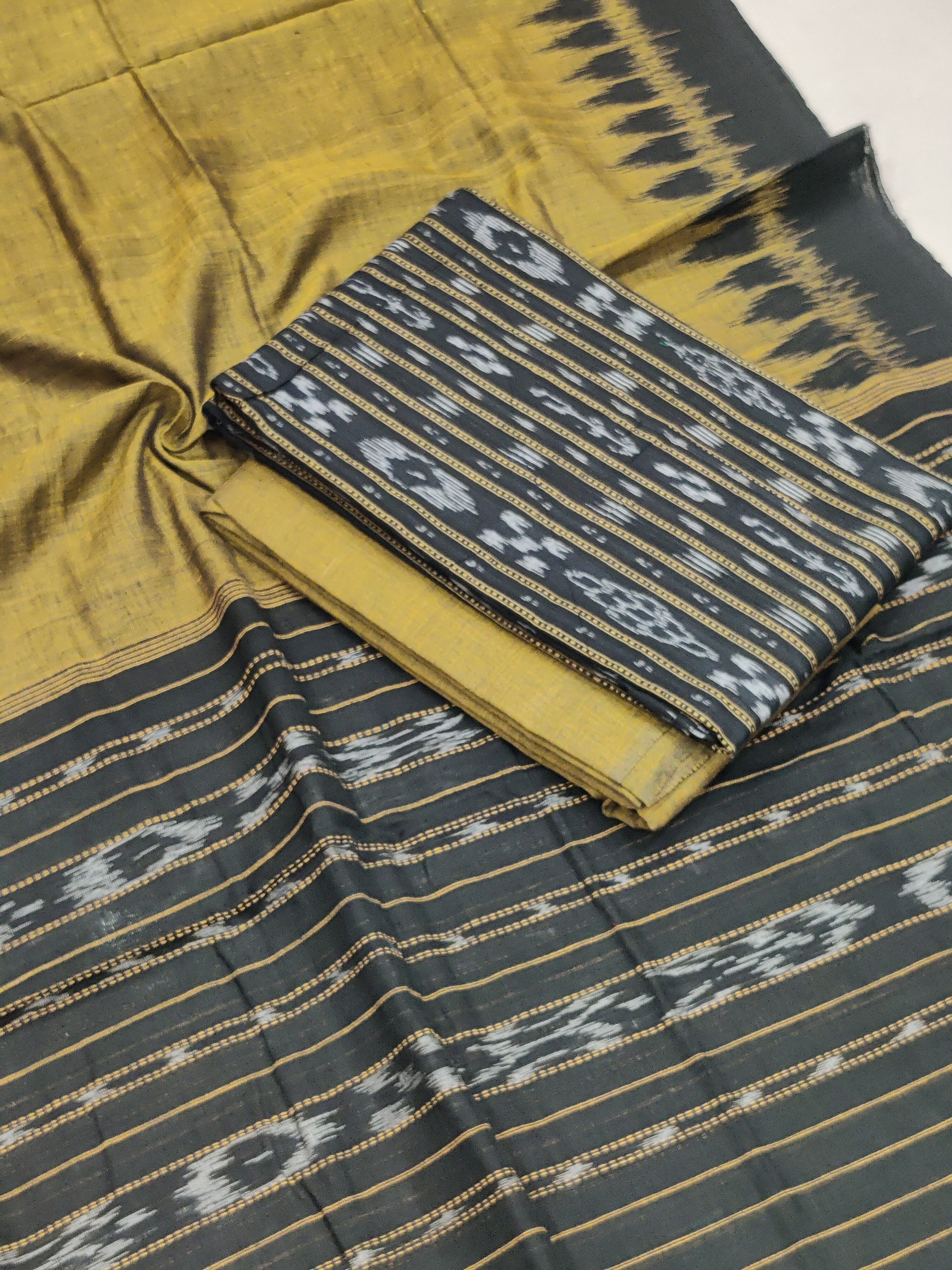 BLACK- 3PC UNSTITCHED SAMBALPURI IKAT HANDLOOM COTTON SUIT – 10