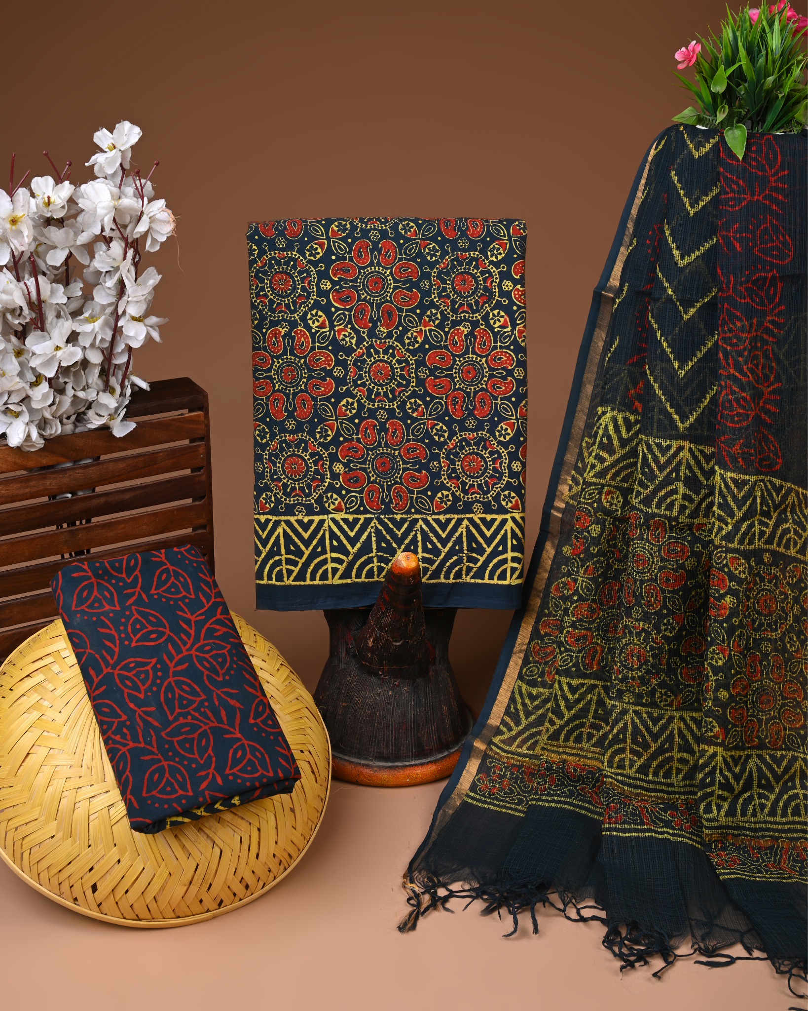 Experience the timeless charm of Bagru artistry with this premium-cotton suit set. Crafted by skilled artisans using traditional hand block printing techniques, every motif is stamped individually — ensuring each piece is beautifully unique.