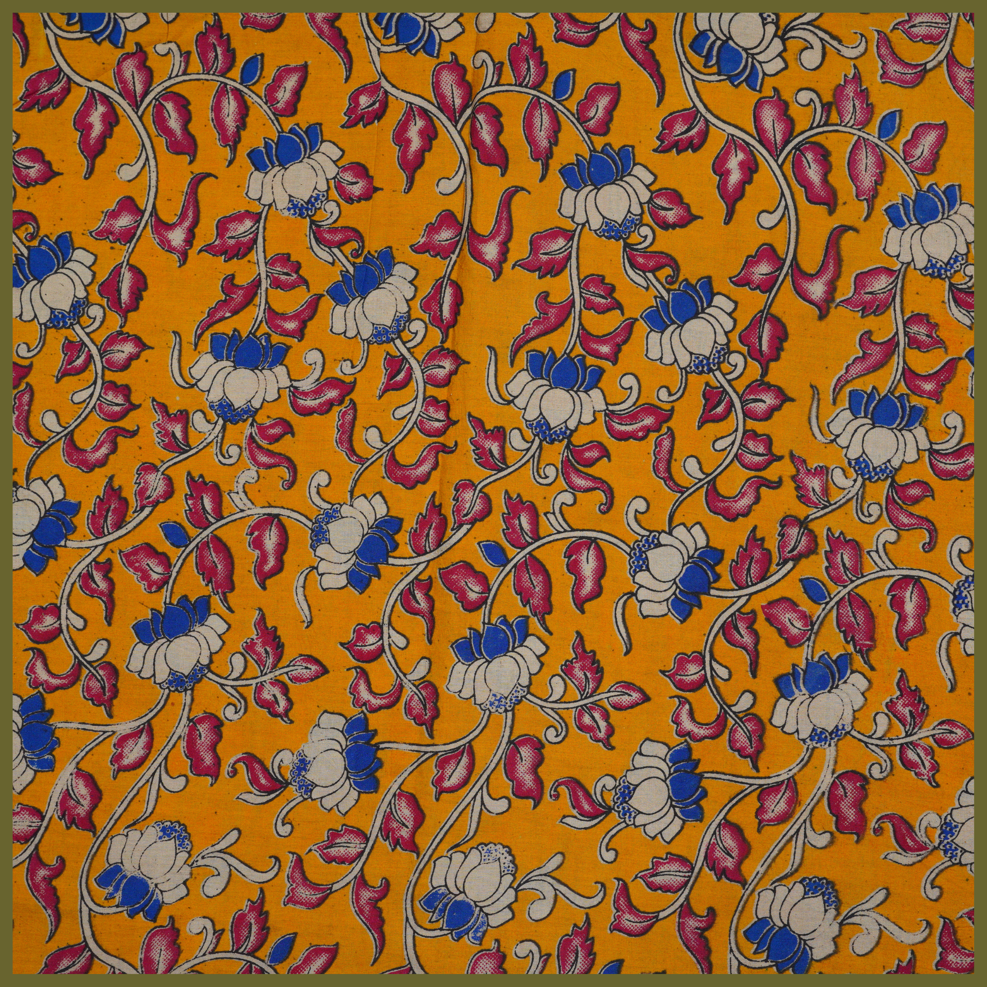 YELLOW- BLOCK PRINT COTTON PEDANA KALAMKARI FABRIC 04