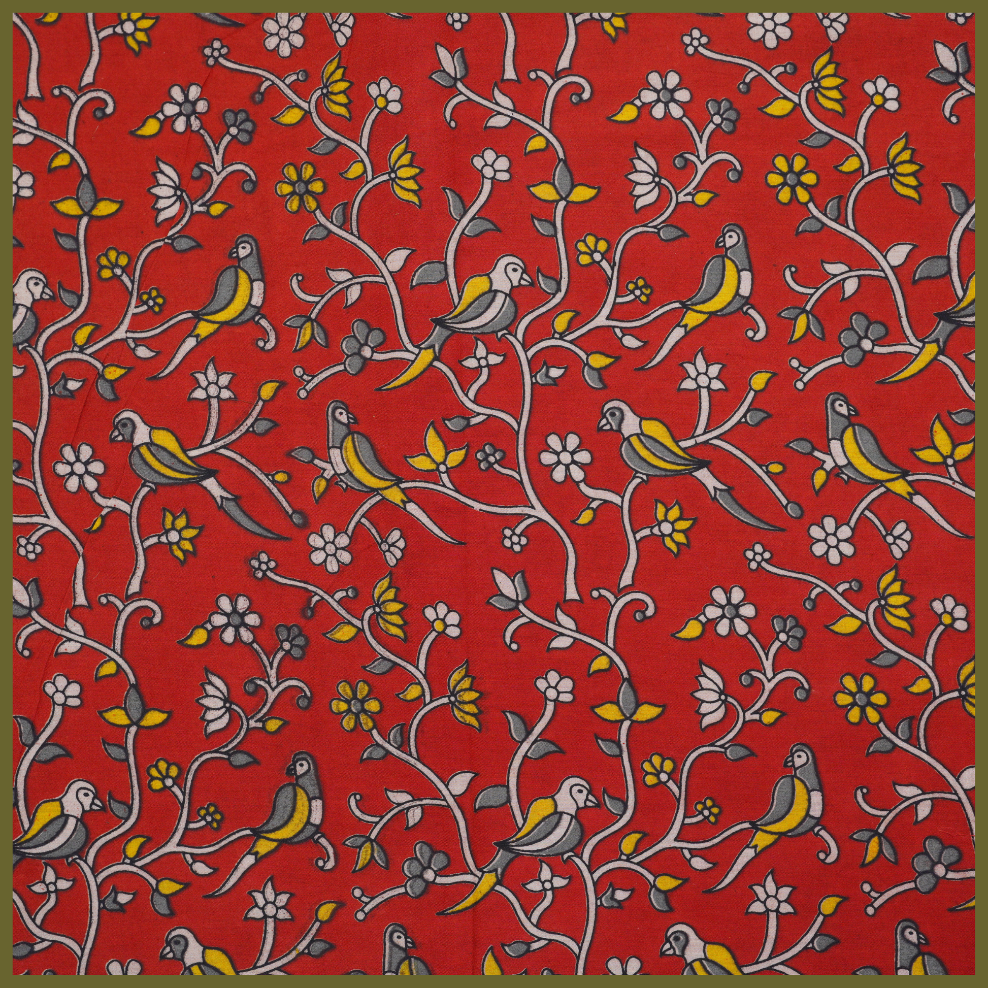RED- BLOCK PRINT COTTON PEDANA KALAMKARI FABRIC 13