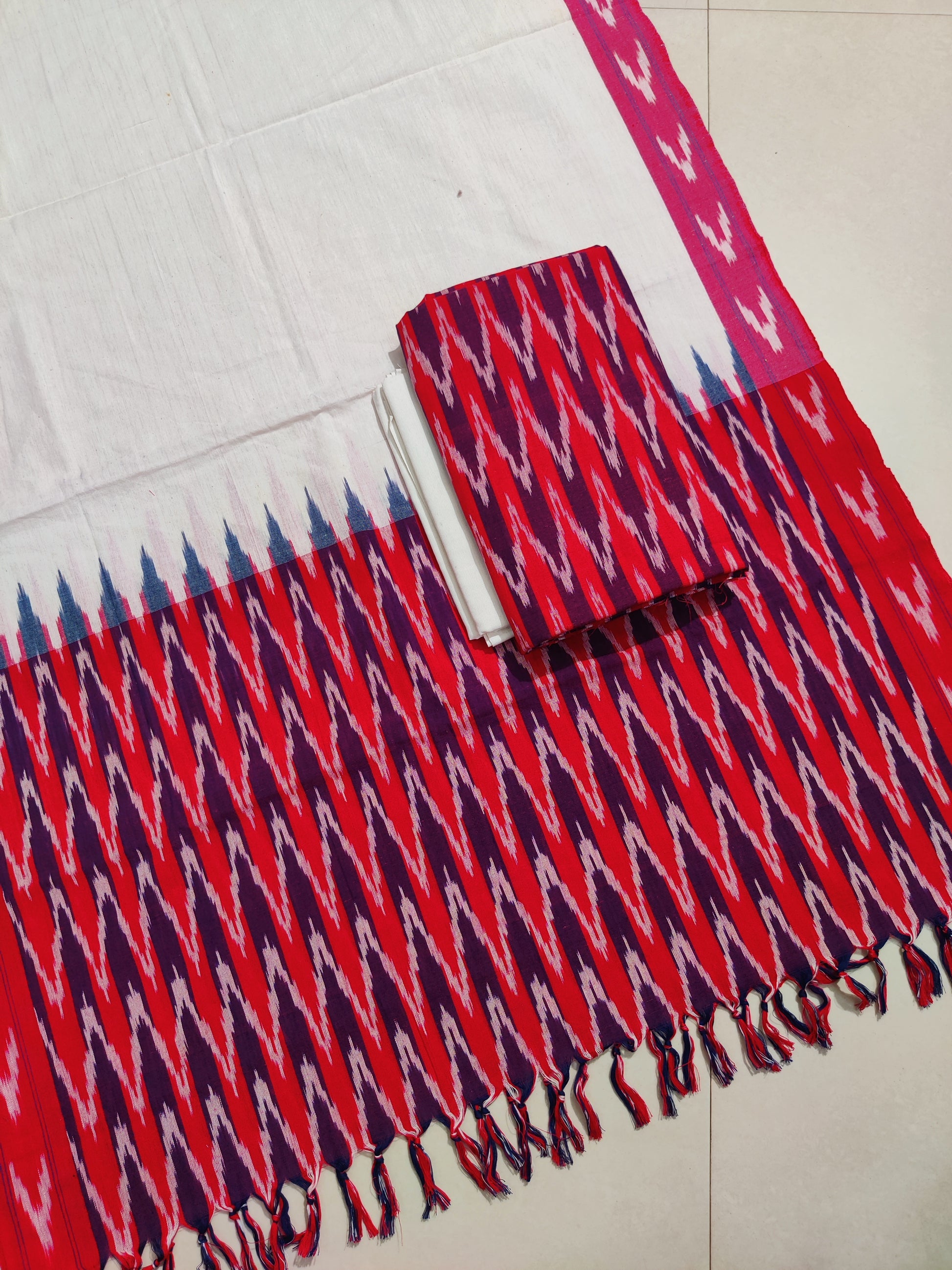 Red - HANDLOOM COTTON 3PC POCHAMPALLY IKAT DRESS MATERIAL 31