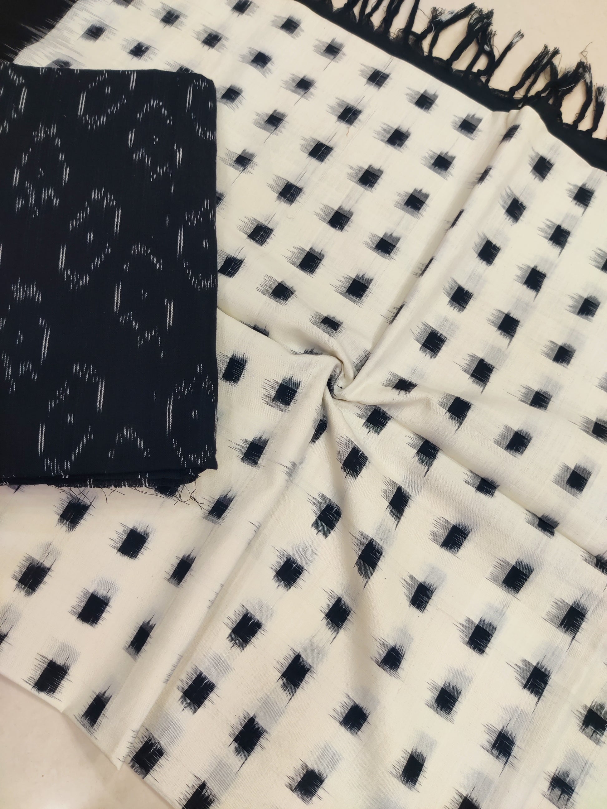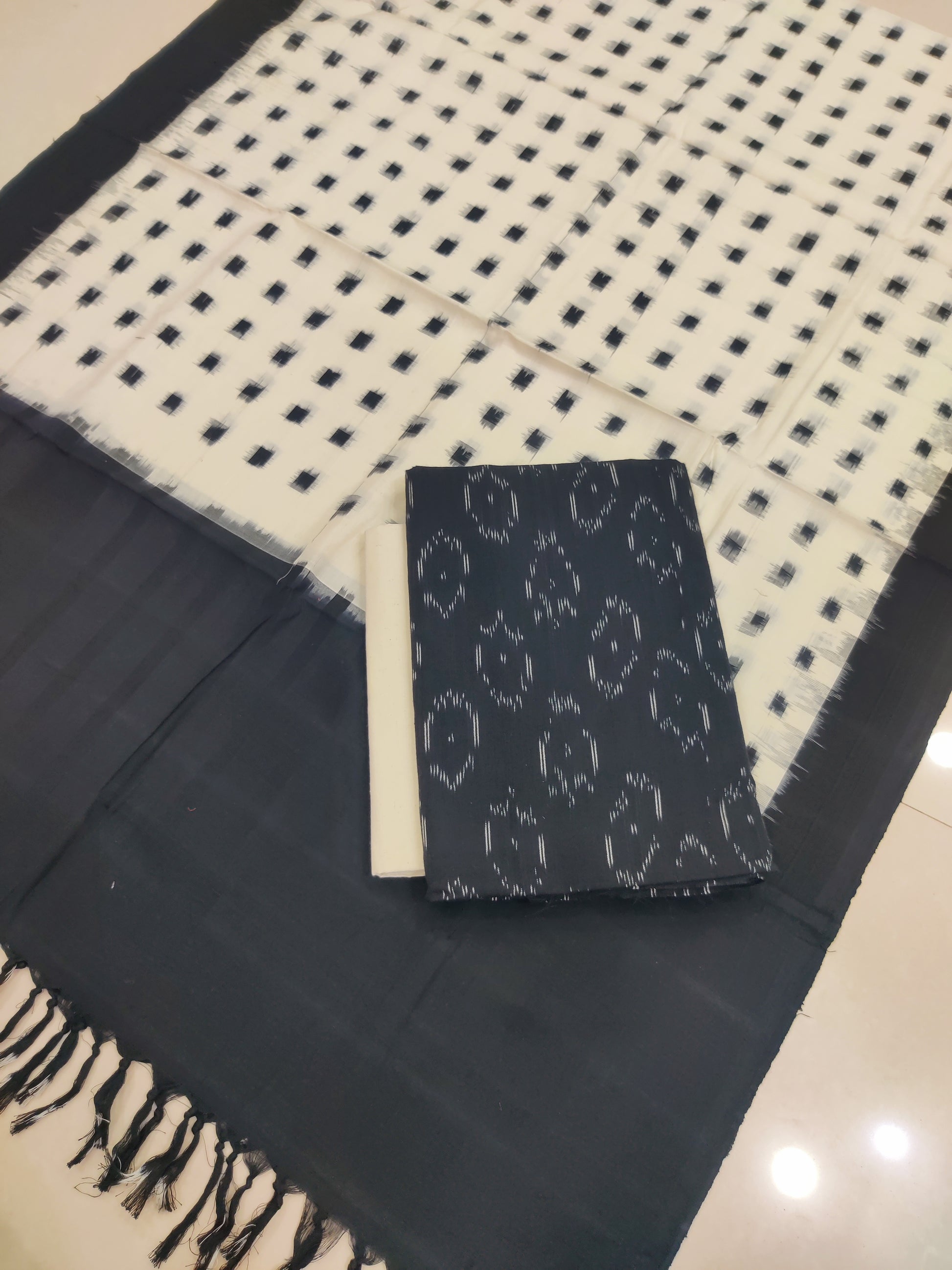 Black - 3PC HANDLOOM POCHAMPALLY DOUBLE IKAT DUPATTA COTTON DRESS MATERIAL 31