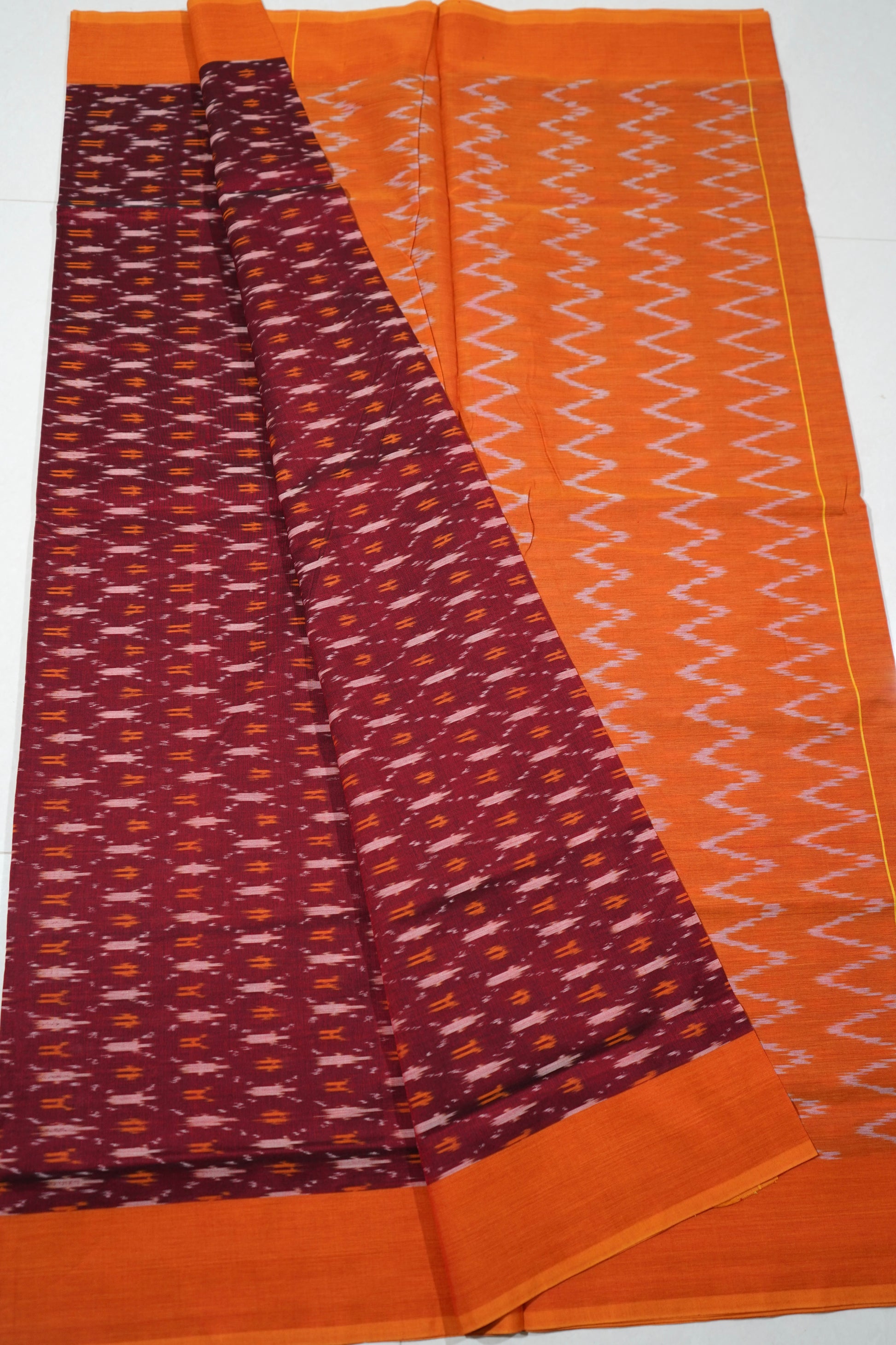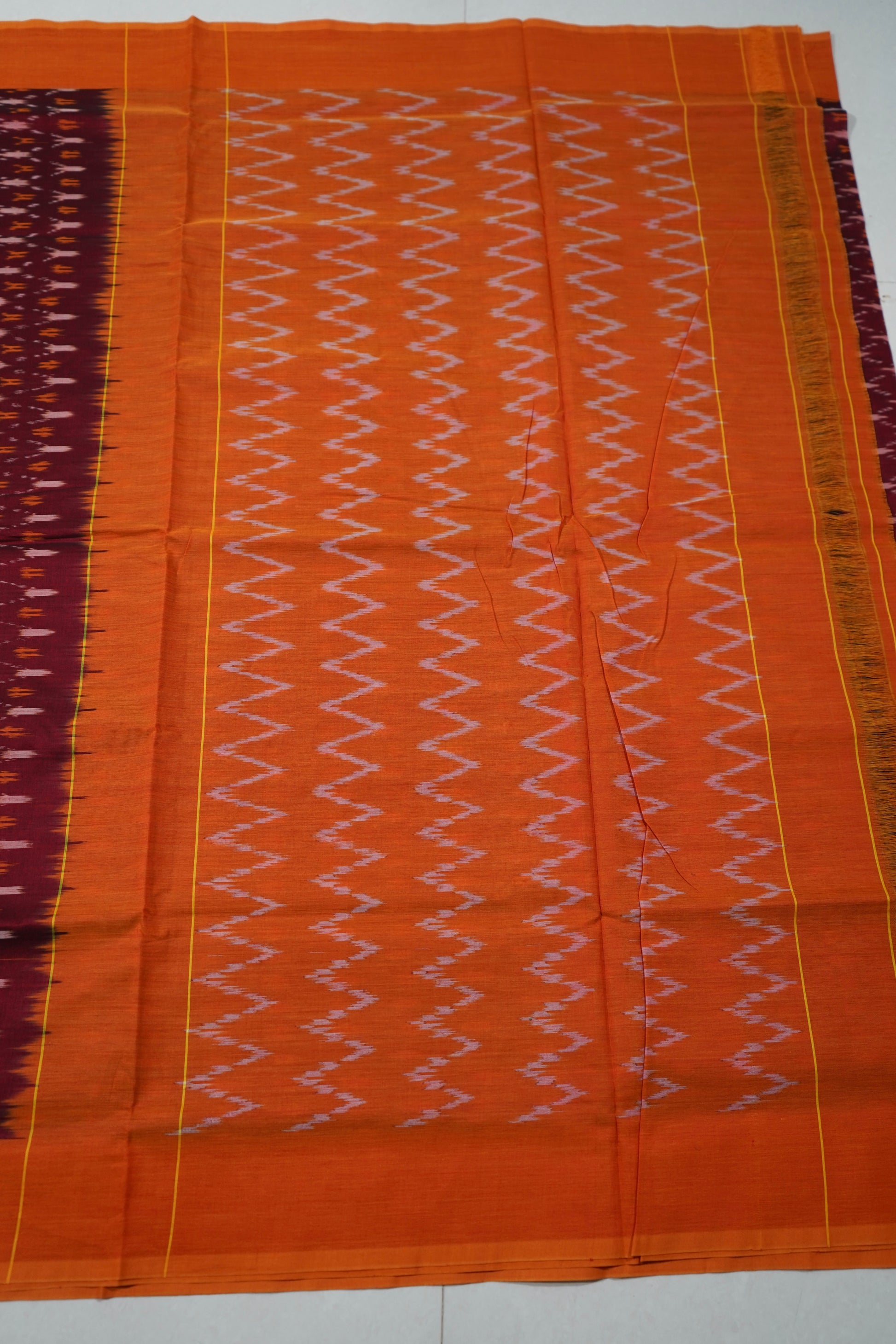 Celebrate the heritage of Telangana with this authentic Pochampally Ikat saree, woven from soft mercerized cottonfor a luxurious feel. The exquisite Ikat patterns, crafted using the traditional resist-dyeing technique, reflect generations of artisan skill.