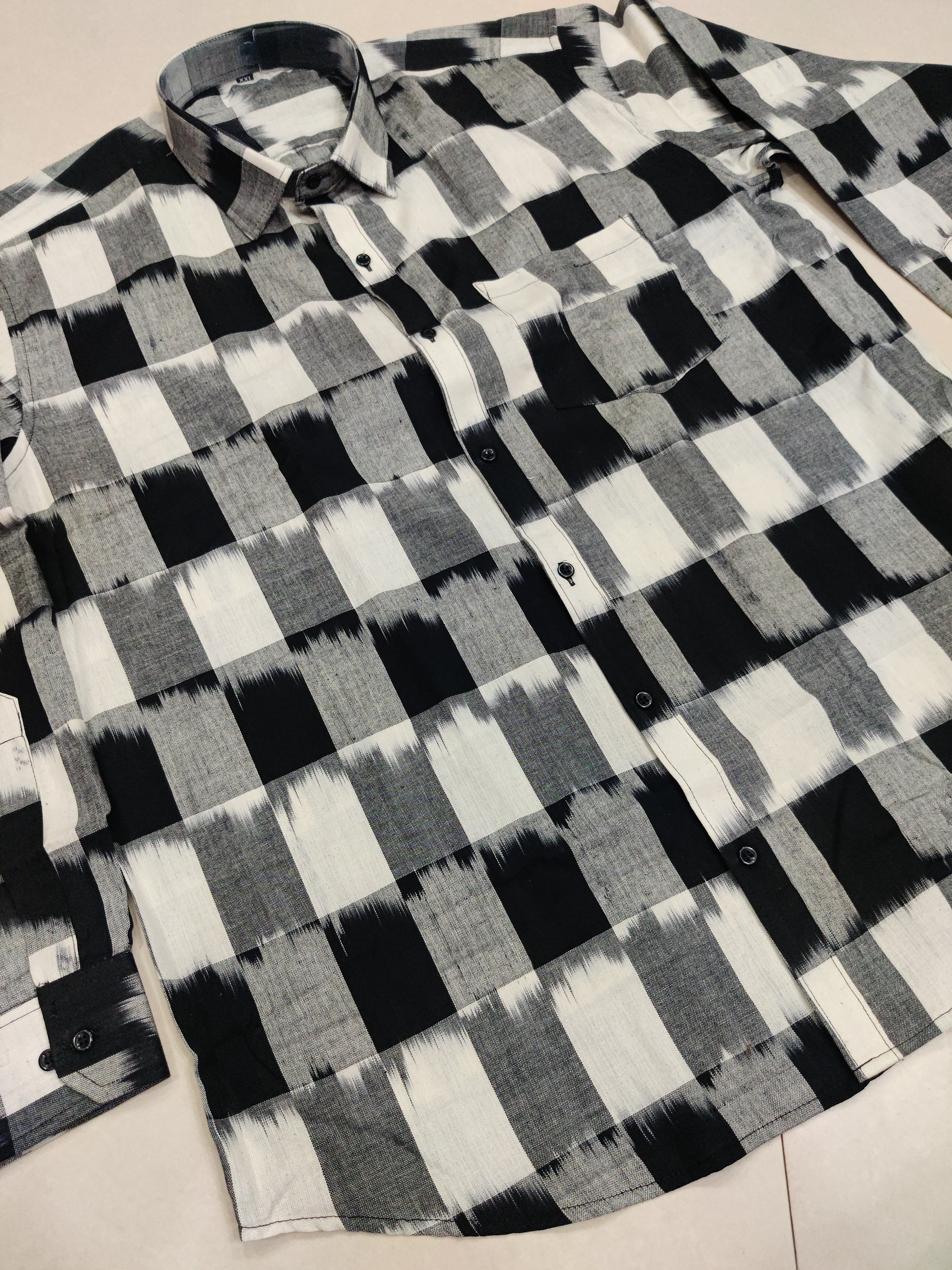 BLACK- FULL SLEEVE COTTON MEN POCHAMPALLY IKAT SHIRT 09