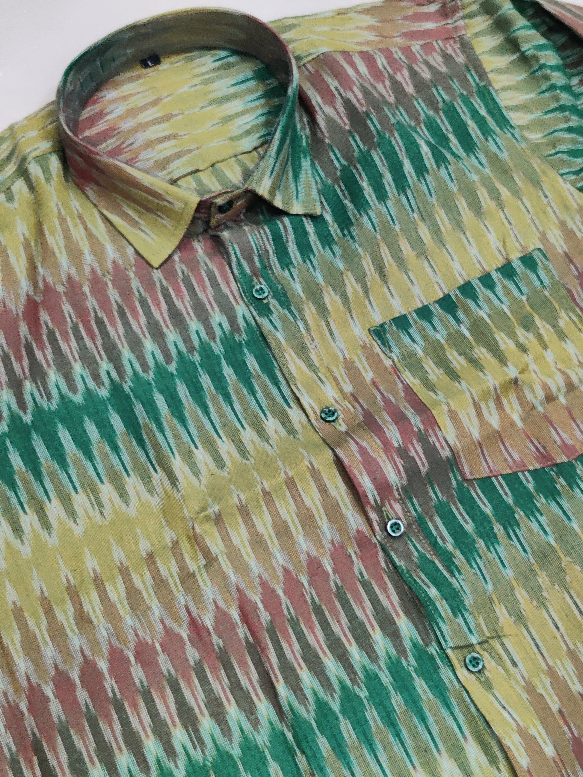 GREEN - FULL SLEEVE COTTON MEN POCHAMPALLY IKAT SHIRT 11