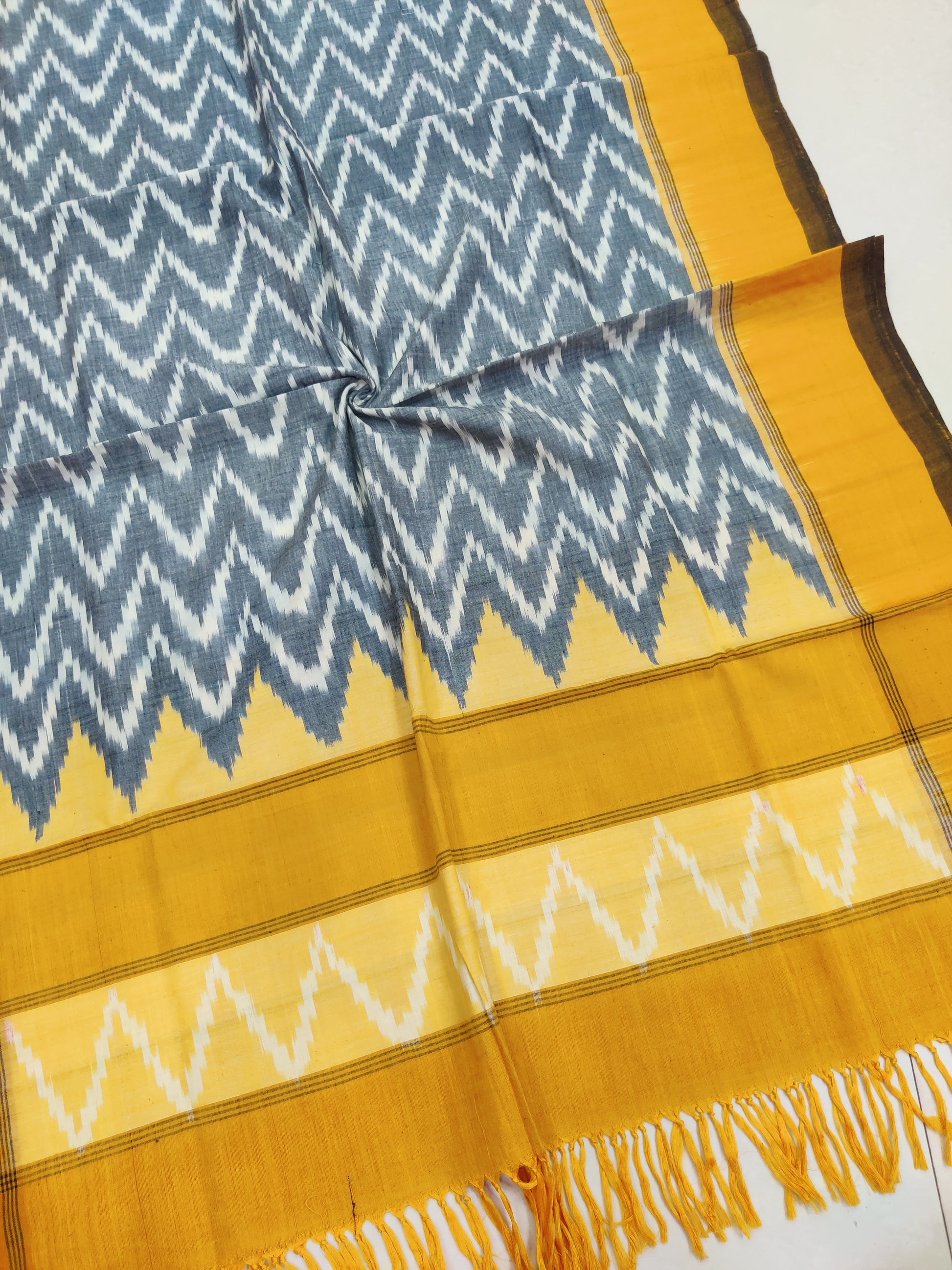 Yellow - POCHAMPALLY DOUBLE IKAT COTTON HANDLOOM DUPATTA 05