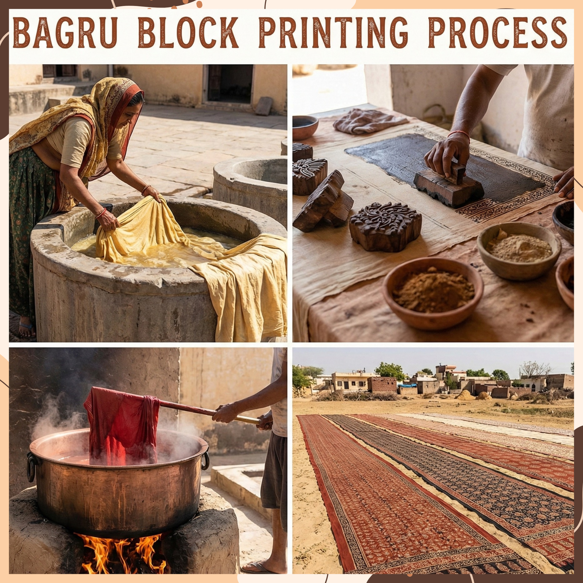 This suit set is handcrafted using the traditional Bagru hand block printing technique. Slight color / print variations (5–10%) may be visible due to the artisanal process and screen/lighting differences.
