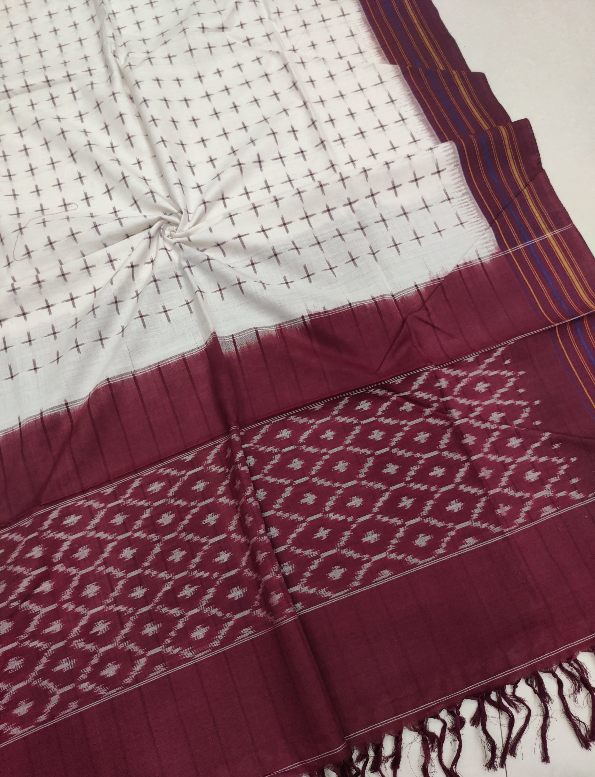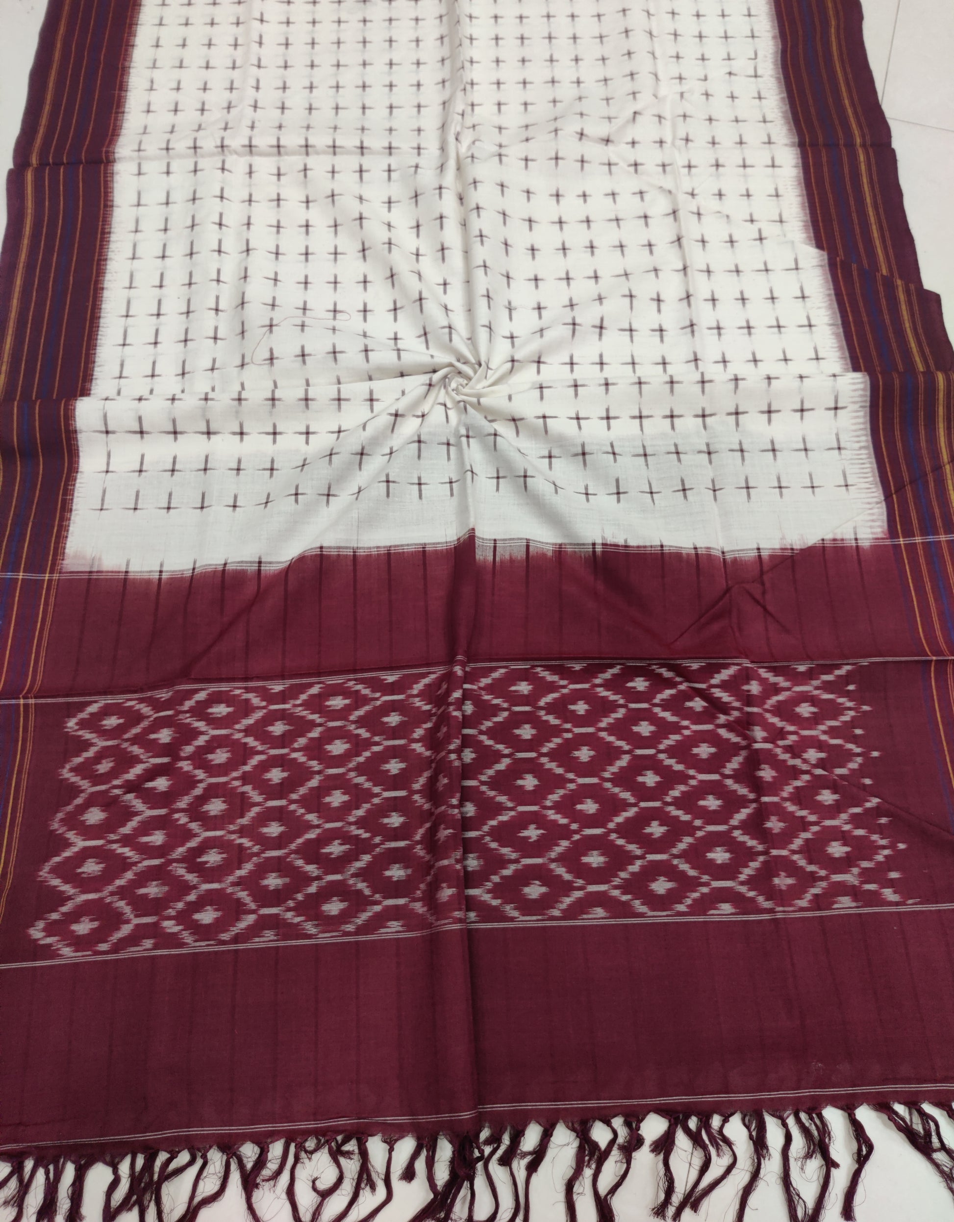 MAROON - POCHAMPALLY DOUBLE IKAT COTTON HANDLOOM DUPATTA 22