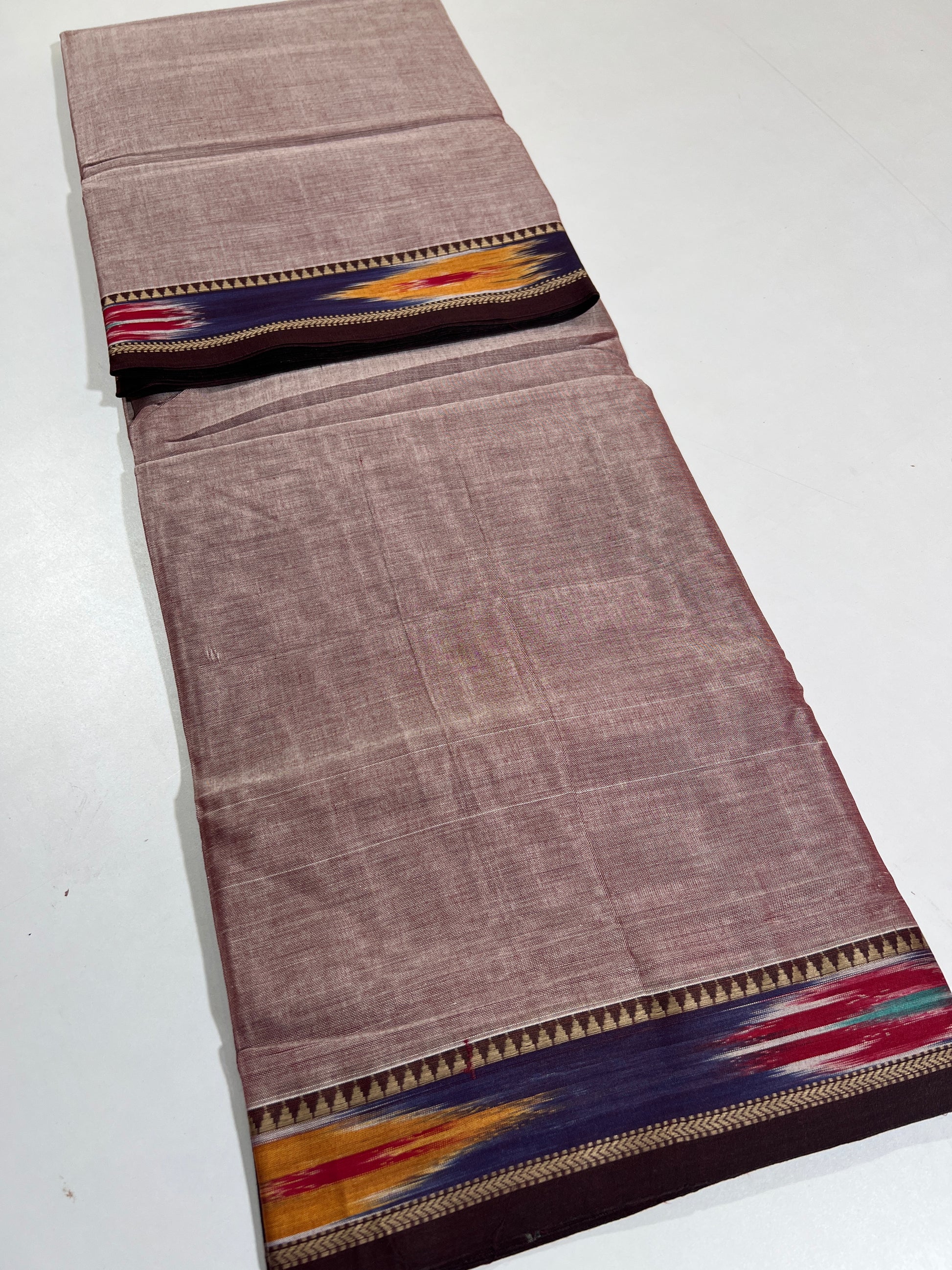 Woven using fine-quality cotton yarns, this saree feels exceptionally lightweight, breathable, and comfortable, making it perfect for everyday wear, festive occasions, office styling, and cultural events. The saree features a classic contrast border, a signature element of Narayanpet weaves, adding elegance and definition to your drape.