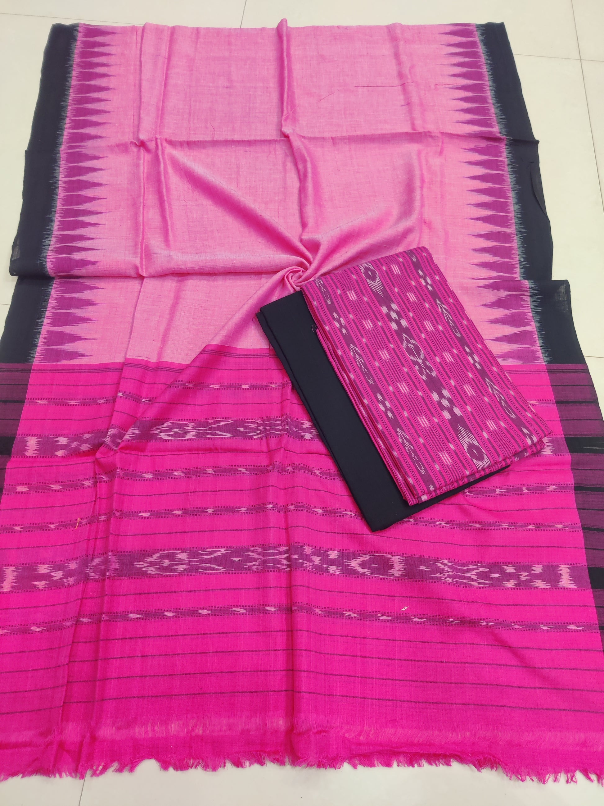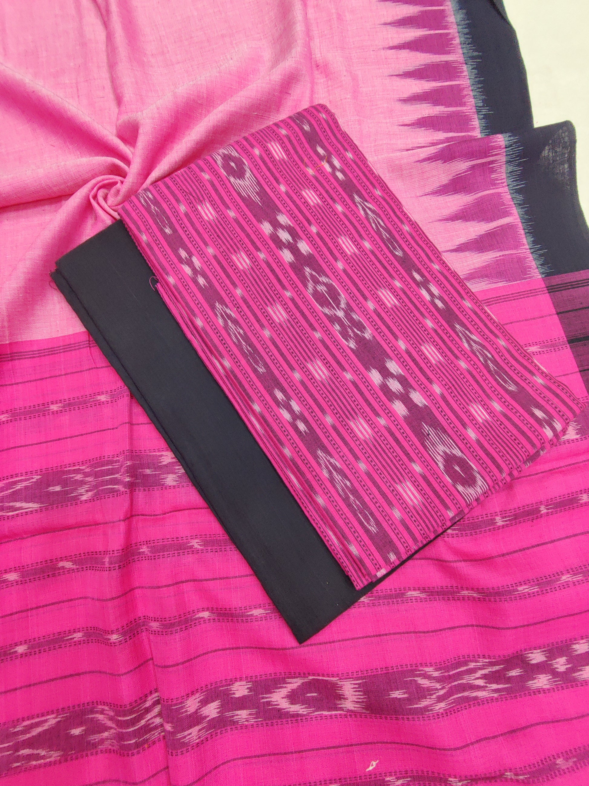 PINK - 3PC Unstitched Sambalpuri Ikat Handloom Cotton Suit Fabric – 01