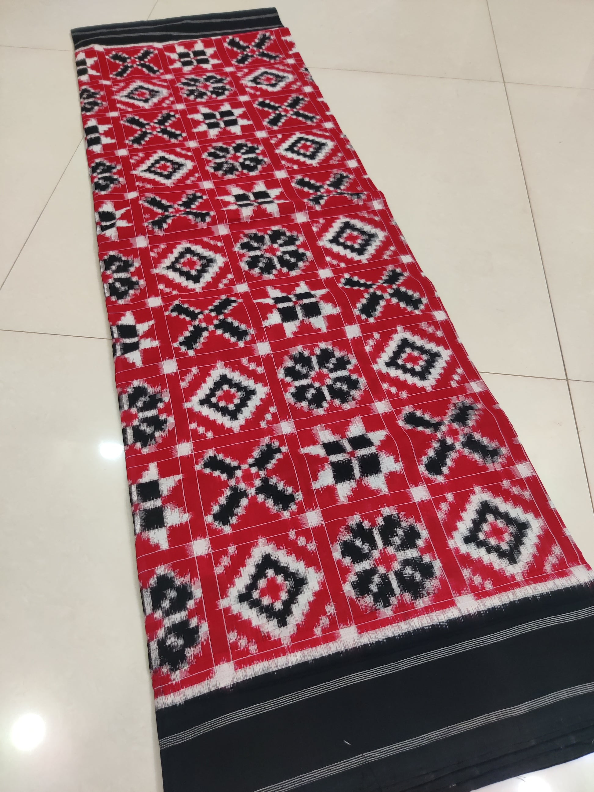 Experience the rich legacy of Telangana with this Handwoven Telia Rumal Double Ikat Cotton Saree — a timeless masterpiece cherished for its precision, heritage, and artistic depth. Known for its unique oil-treated yarns, Telia Rumalrepresents one of the oldest and most intricate Ikat traditions, forming the foundation of the world-famous Pochampally weaving craft.