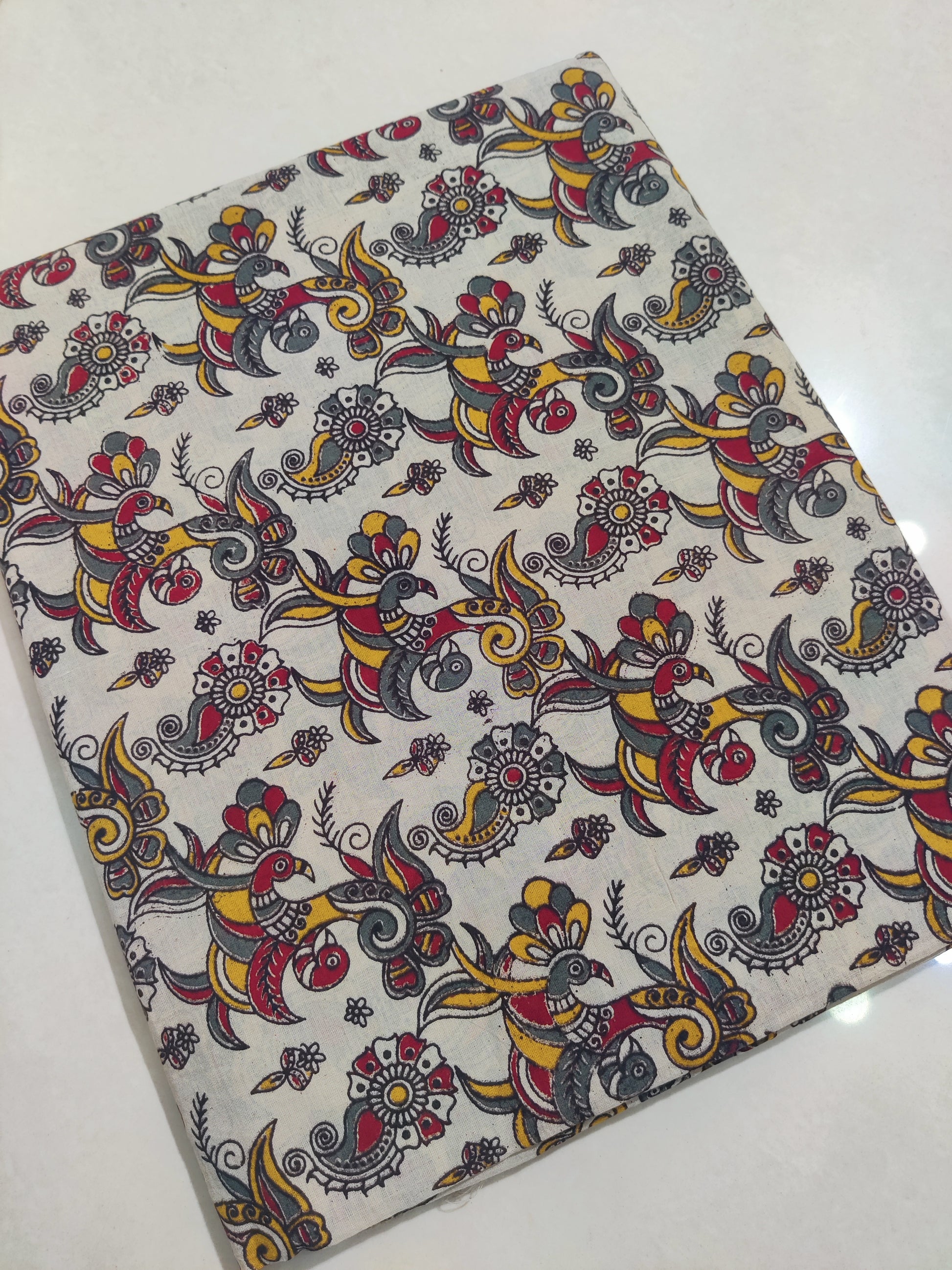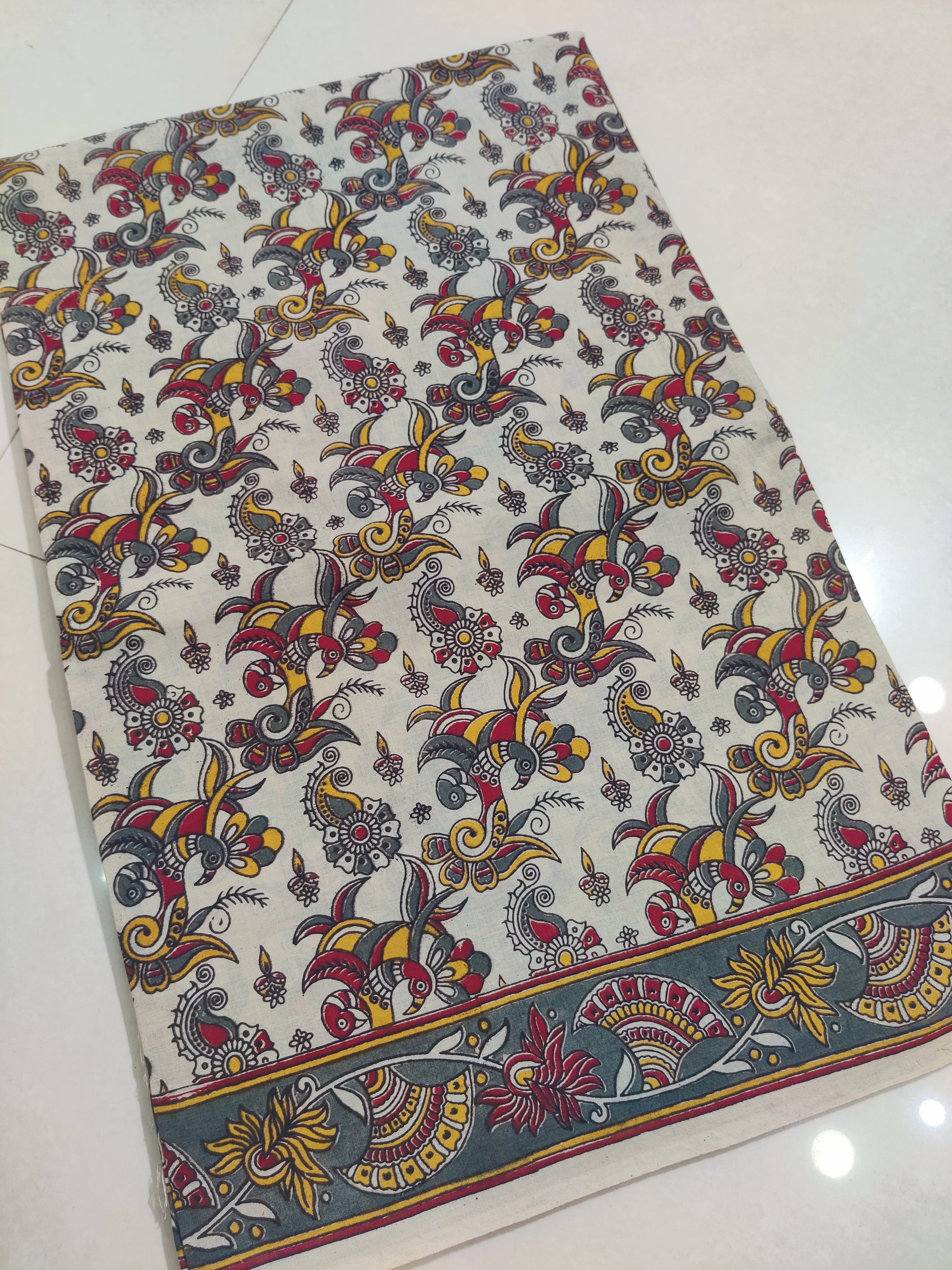 Is the Kalamkari design hand-painted or printed?