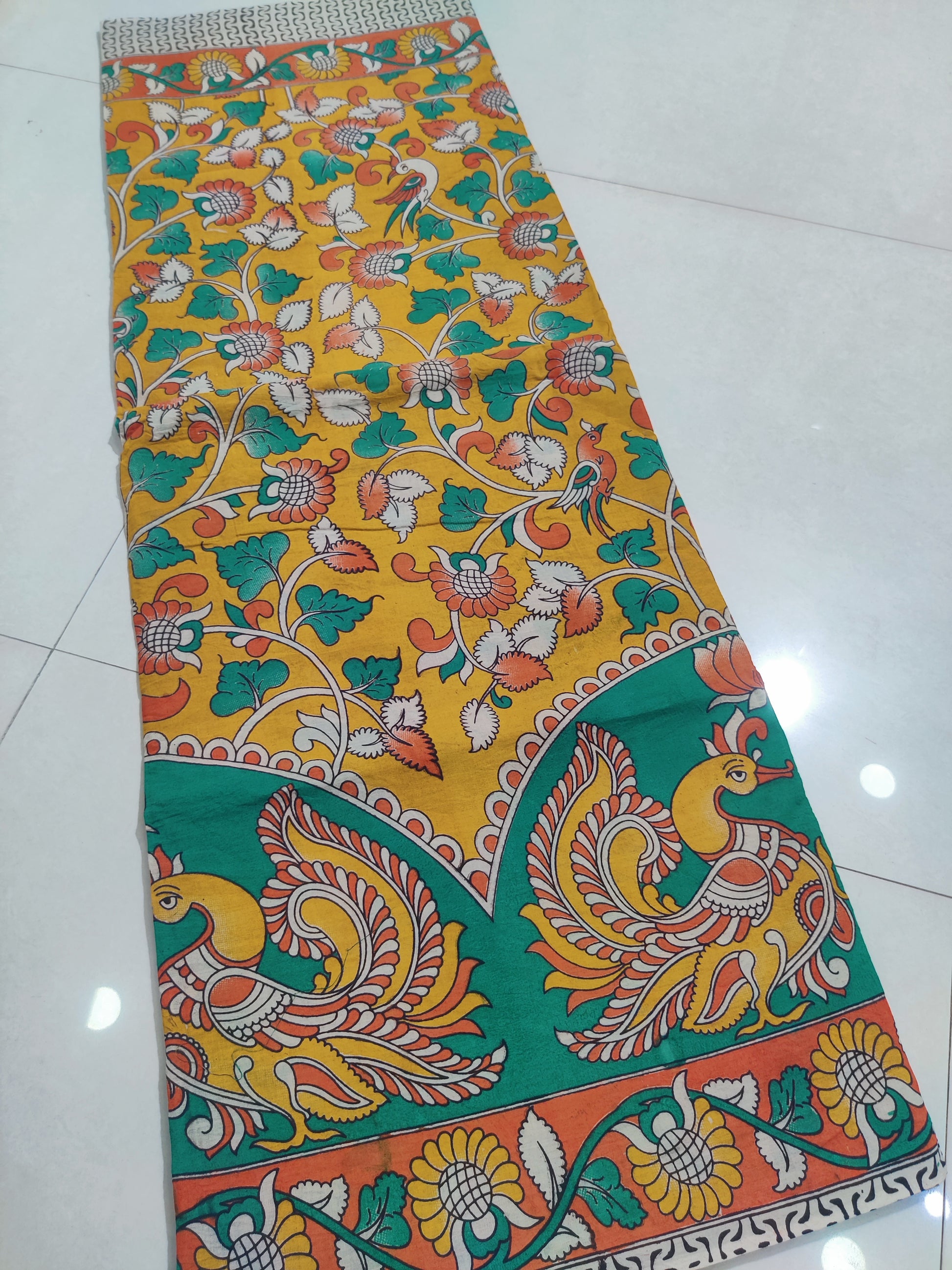 YELLOW- PRINTED COTTON KALAMKARI SAREE 06