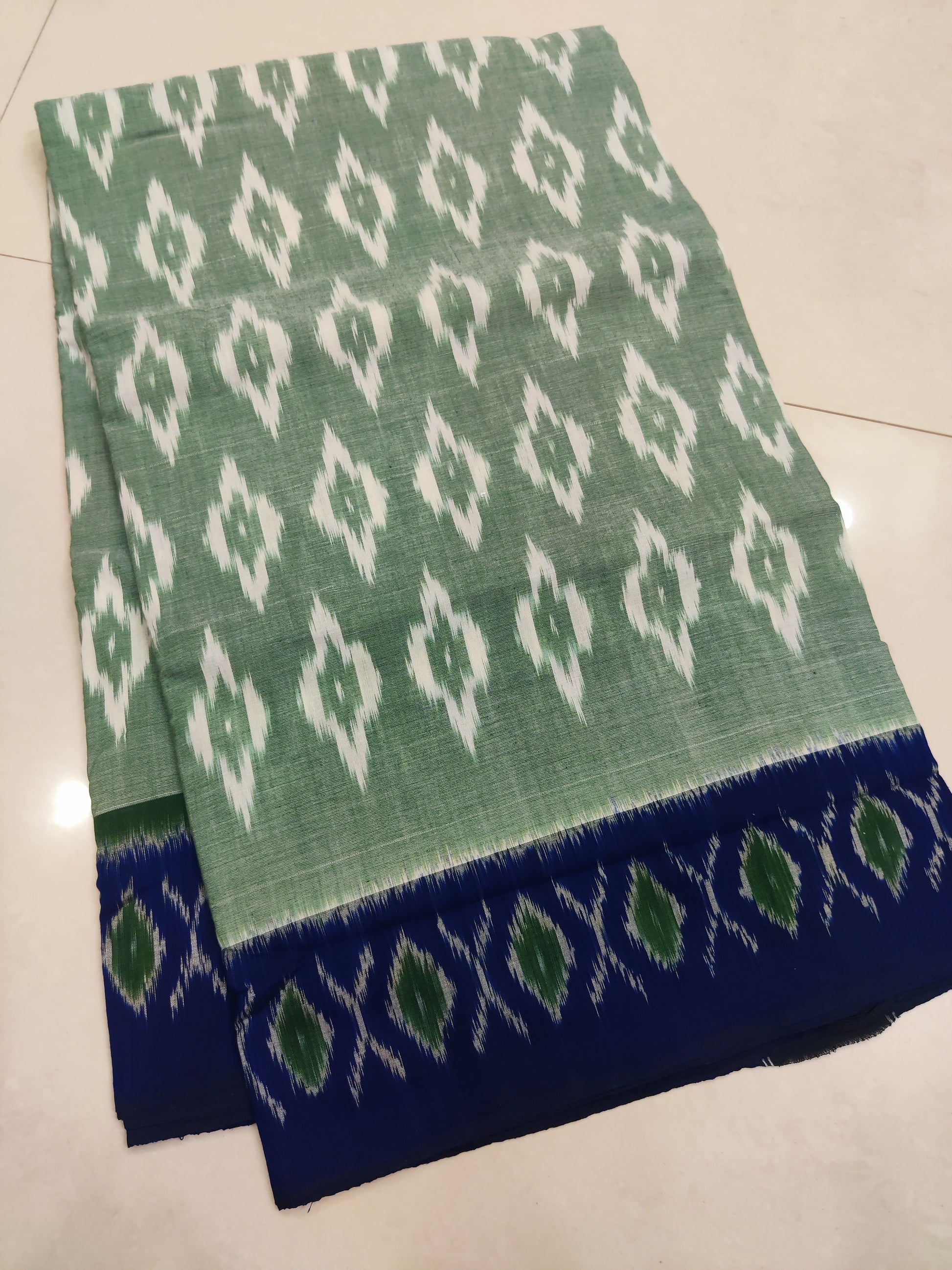 Each motif is crafted using the traditional resist-dyeing technique, where threads are meticulously tied and dyed before weaving — a process that demands patience, precision, and skill. The result is a saree that speaks of heritage, craftsmanship, and enduring beauty.