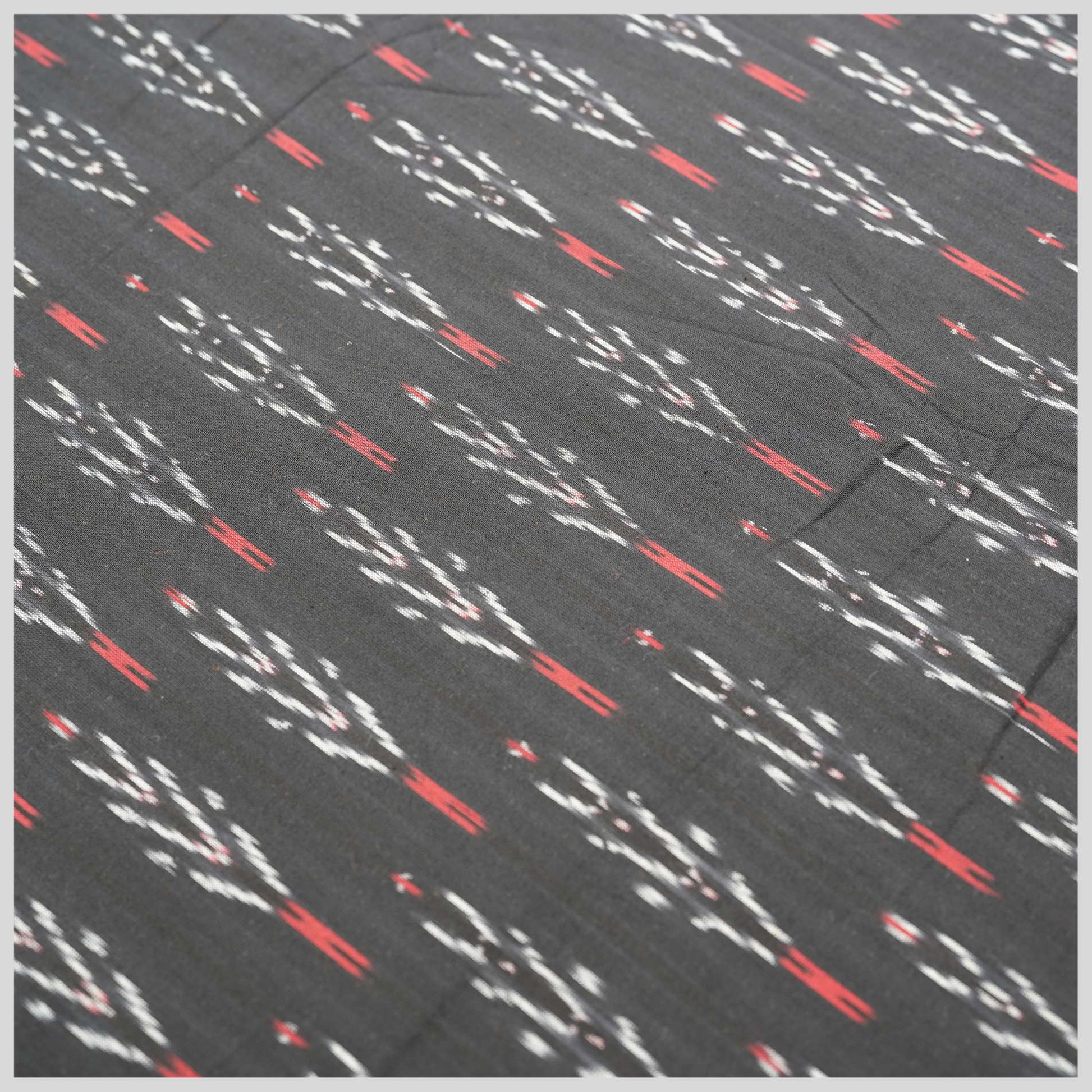 Pure cotton Pochampally Ikat fabric from Telangana, celebrated worldwide for its rich heritage and timeless craftsmanship. This fabric is created using the traditional Ikat resist-dye technique, where warp and weft yarns are meticulously dyed before weaving, resulting in distinctive patterns and vibrant character.