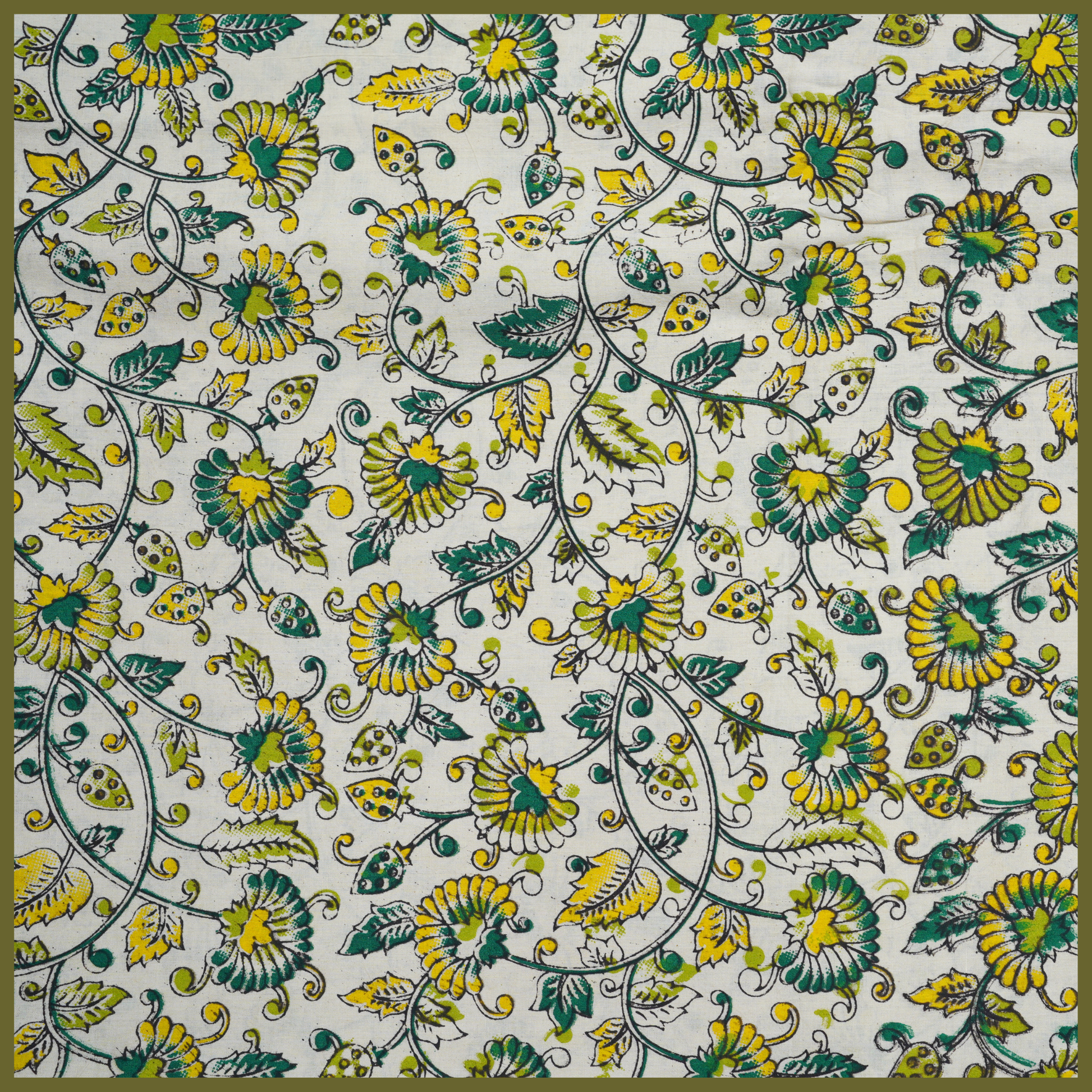 GREEN - BLOCK PRINT COTTON PEDANA KALAMKARI FABRIC 01