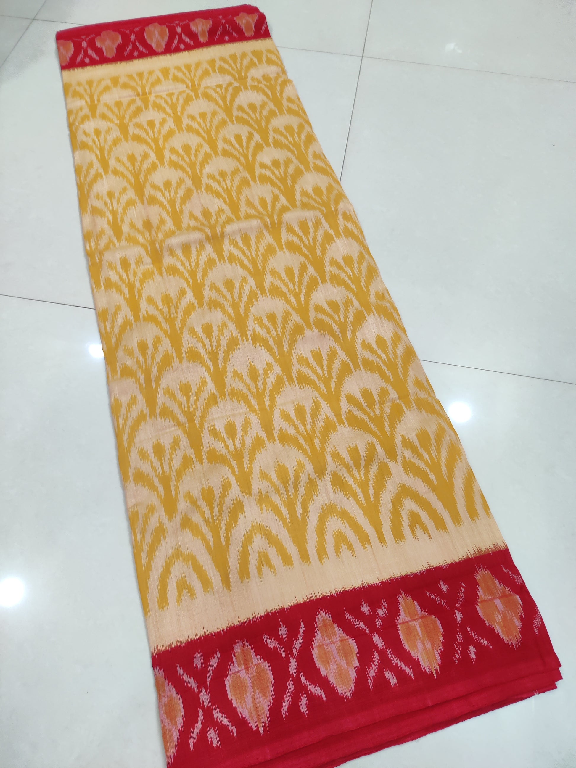 YELLOW- MERCERISED PURE COTTON HANDLOOM POCHAMPALLY IKAT SAREE 118
