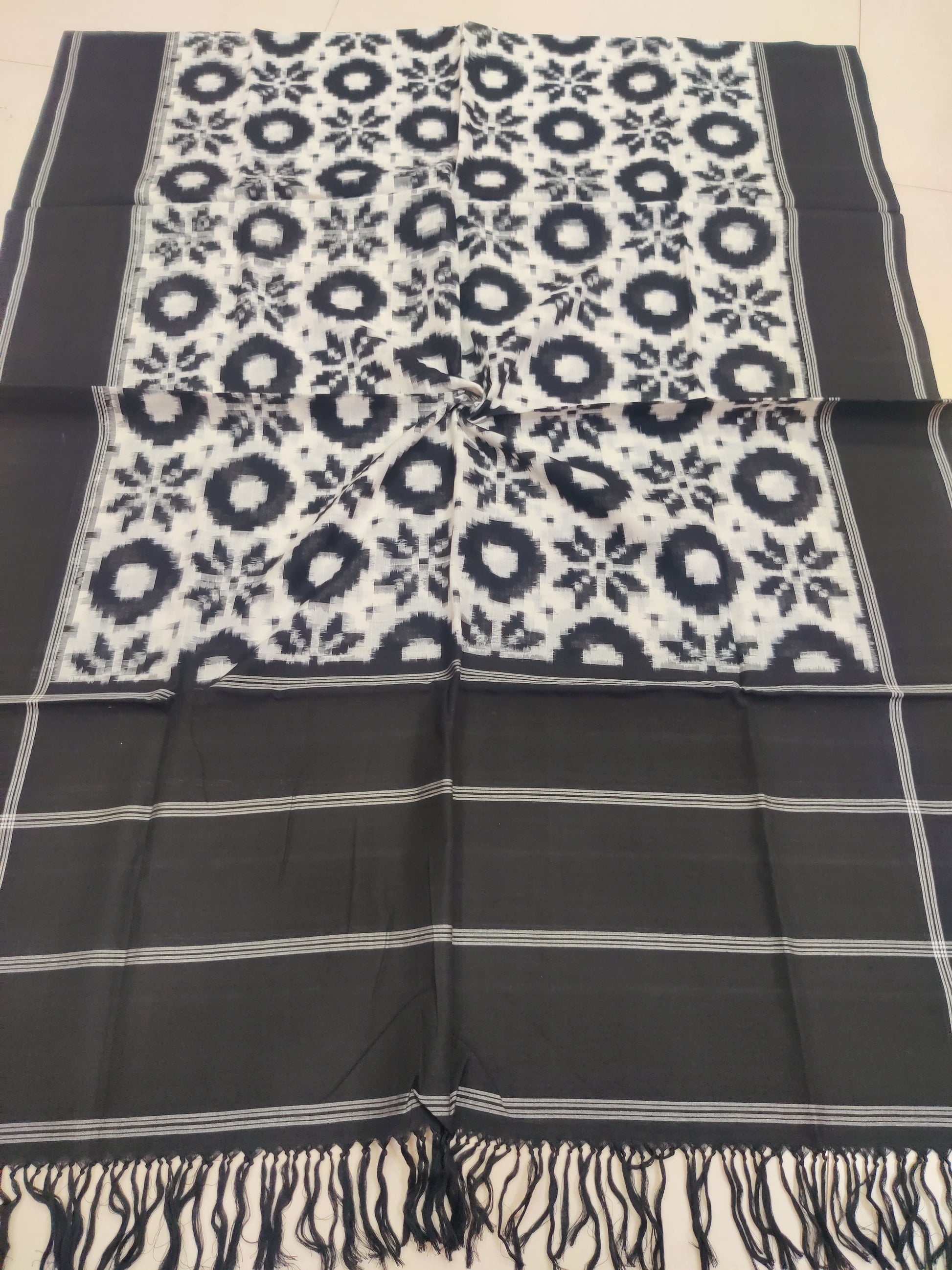 BLACK - TELIA RUMAL HANDLOOM COTTON POCHAMPALLY DOUBLE IKAT DUPATTA 12