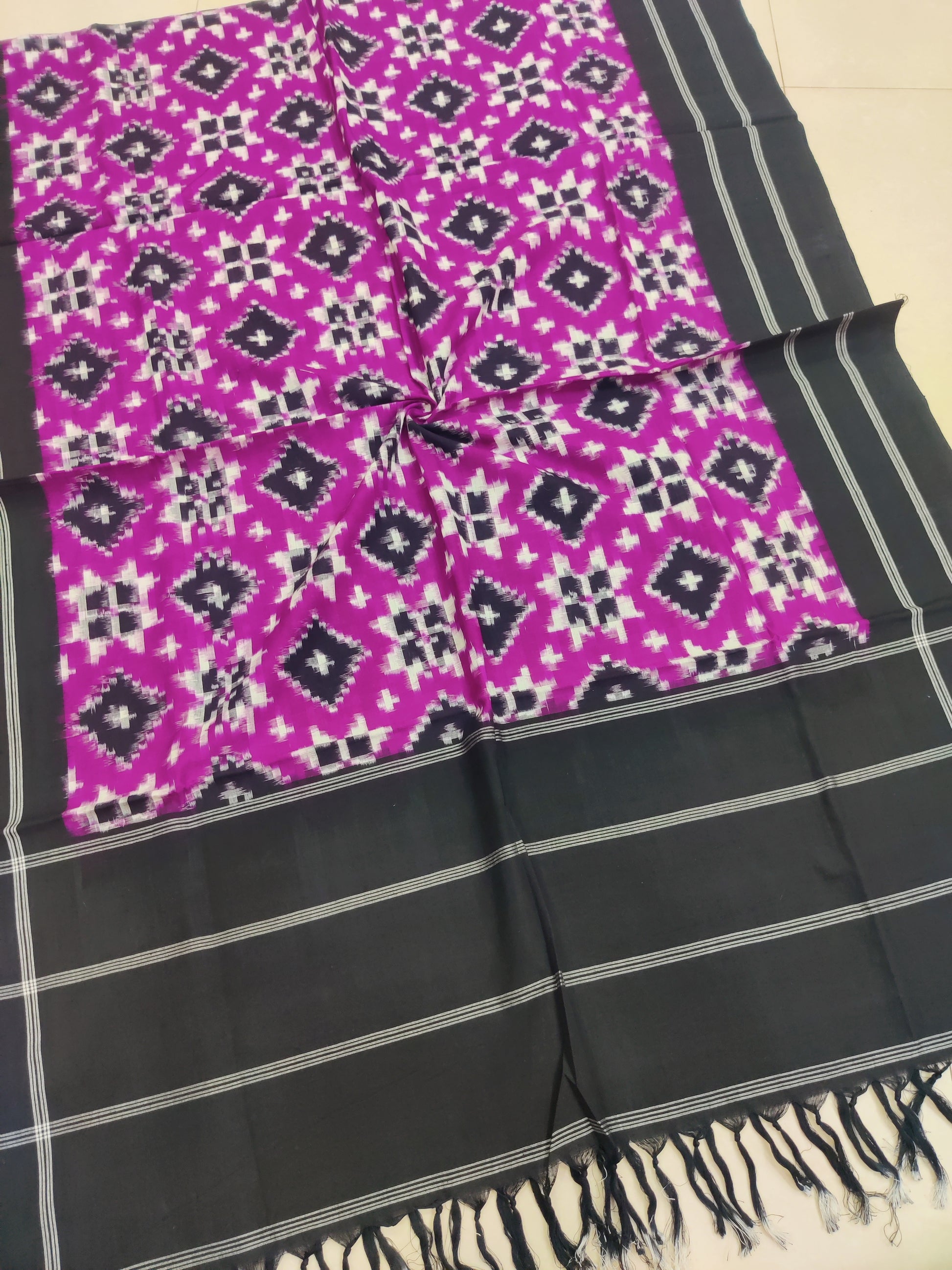 Immerse yourself in the artistry of Pochampally weaving with this exquisite Telia Rumal Double Ikat Cotton Handloom Dupatta. Each piece is meticulously handwoven using the ancient double ikat technique, where threads are resist-dyed before weaving to form intricate geometric patterns.